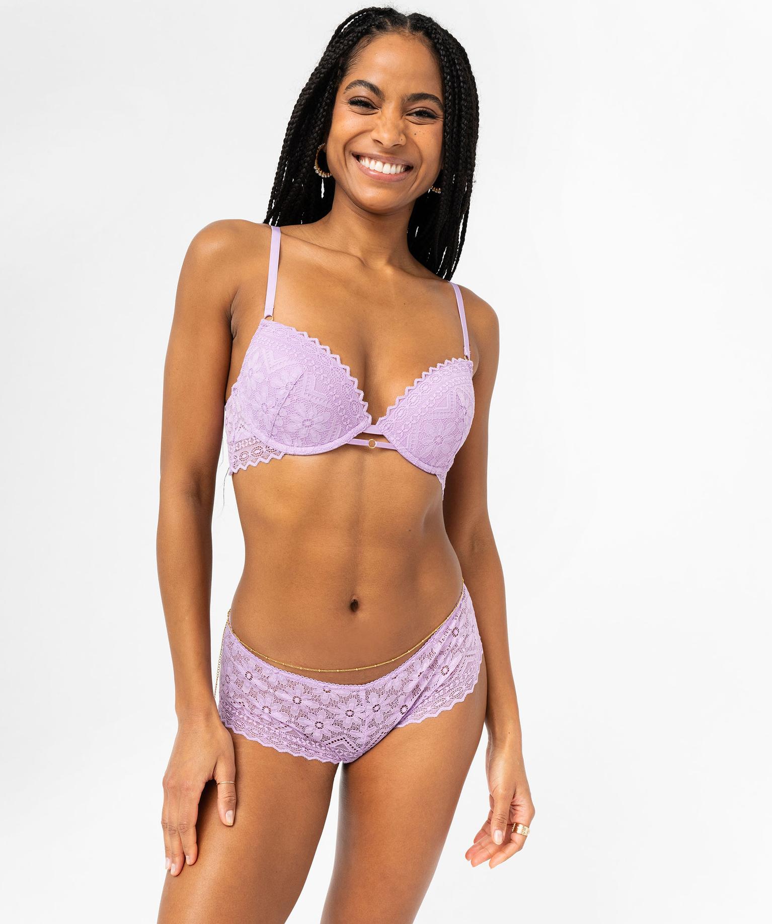 Shorty en dentelle fleurie transparente femme[MISSING] violet