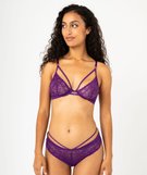 Shorty en dentelle graphique à brides élastiques femme violet