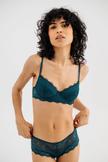 Soutien-gorge à armatures forme corbeille en dentelle[MISSING] vert fonce