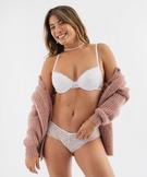 Le soutien-gorge corbeille n’a pas son pareil pour sublimer le décolleté. Ce modèle à bonnets coqués recouverts de dentelle possède de jolies finitions festonnées et un petit noeud en satin à l’entre-bonnet. Le tour de buste en tulle à motifs plumetis ajoute une délicieuse touche rétro. Un soutien-gorge à armatures très élégant, à porter avec la culotte assortie.
