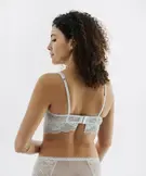 Sublimez votre décolleté avec élégance grâce à ce soutien-gorge corbeille rehaussé d'une basque en dentelle fleurie. Ce soutien-gorge à armatures avec bonnets non coqués respecte le galbe naturel de votre poitrine tout en offrant un maintien optimal. Entièrement réalisé en dentelle, ce soutien-gorge femme se distingue par son entre-bonnet ajouré orné de deux petits nœuds en satin et sa magnifique basque qui lui donne des airs de corset raffiné. Les bretelles ajustables avec croquet fantaisie et les baleines souples sur les côtés garantissent un confort sur mesure. Pratique, la fermeture au dos par deux crochets s'ajuste sur trois positions. Pour un ensemble de lingerie irrésistible, portez ce soutien-gorge corbeille avec le bas assorti.