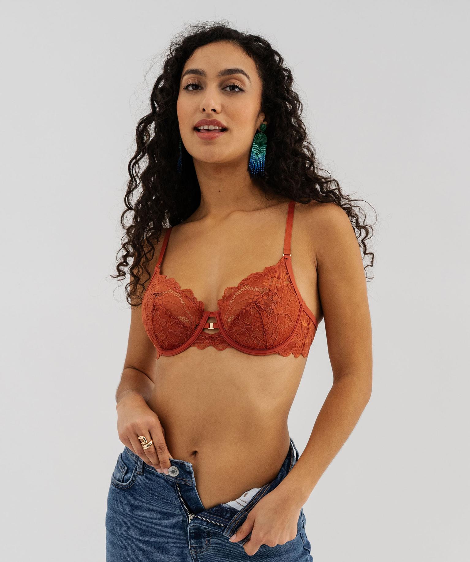 Soutien-gorge corbeille en dentelle avec bonnets souples brique