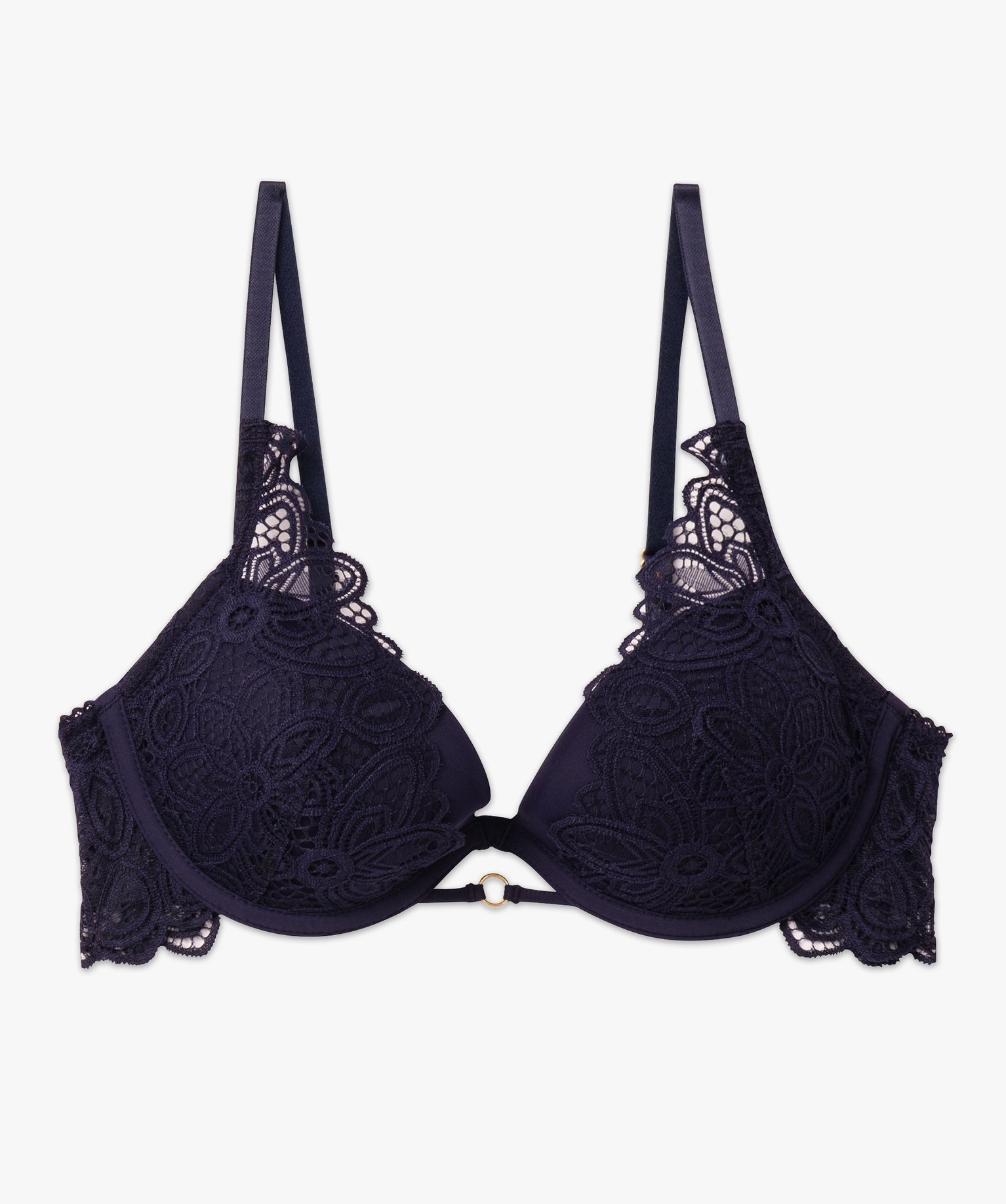 Soutien-gorge corbeille en dentelle avec coques fines bleu