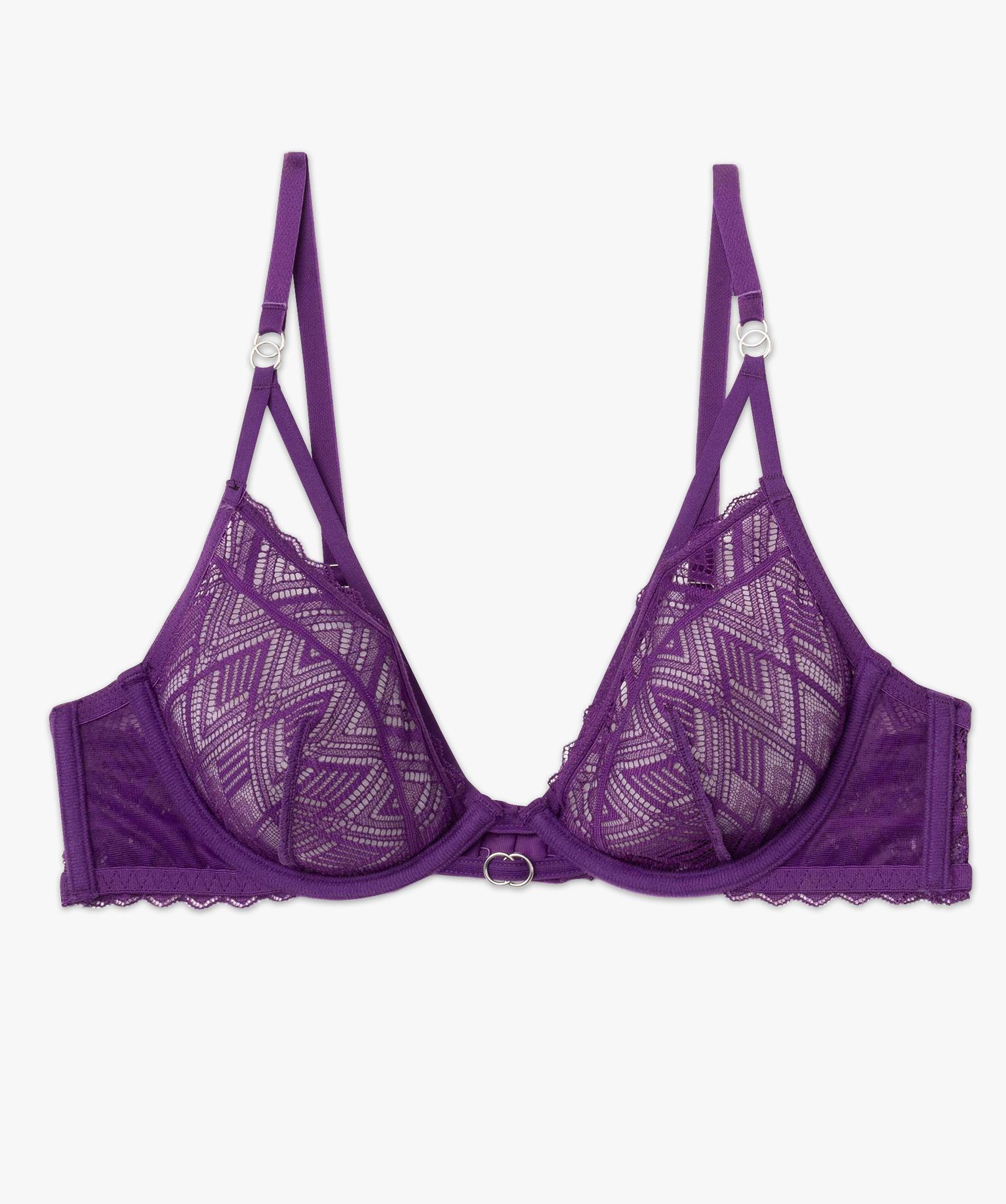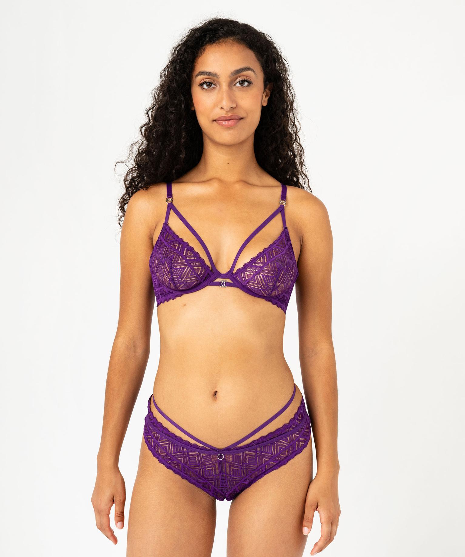 Soutien-gorge corbeille en dentelle avec liens femme violet