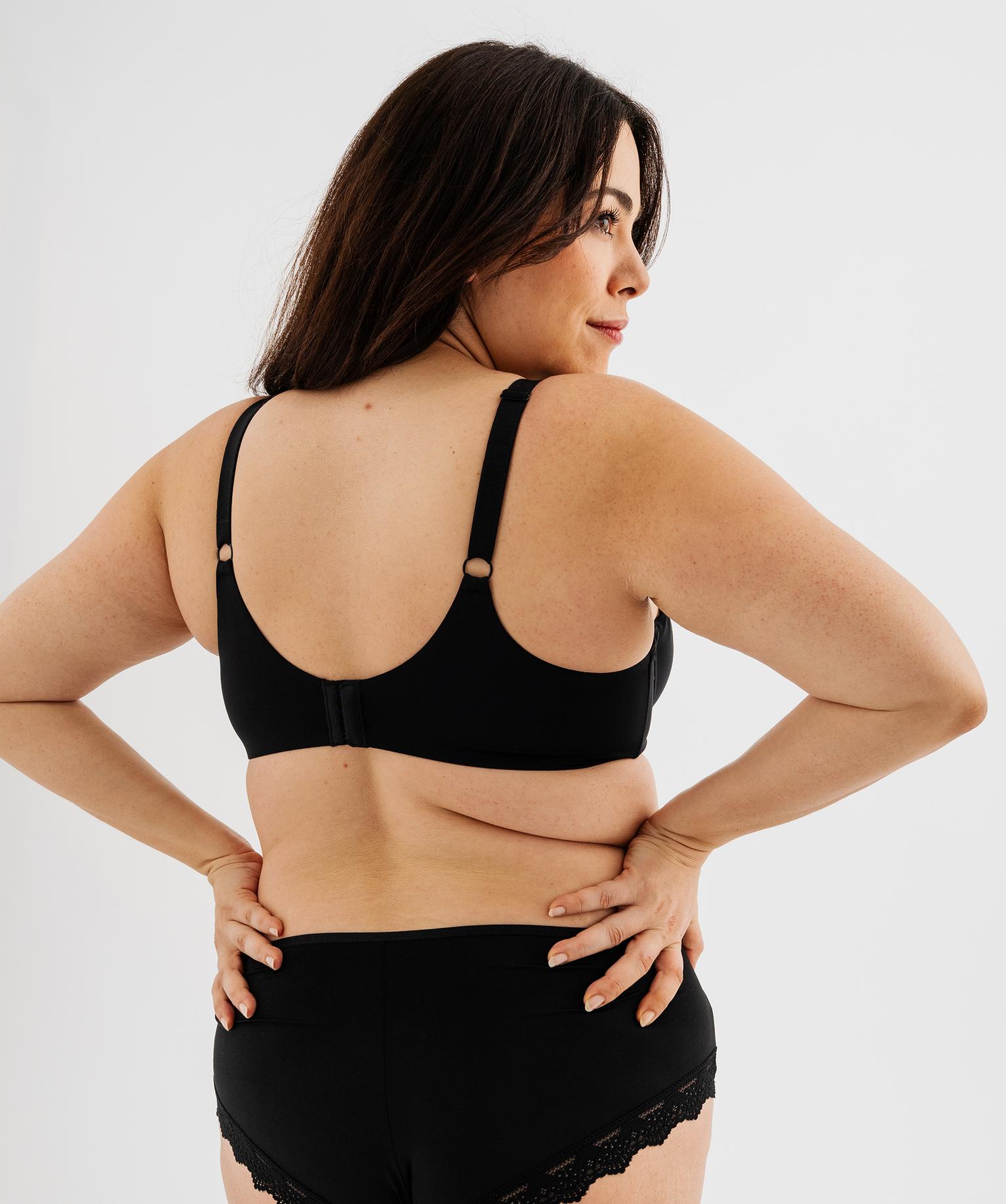 Ce soutien-gorge emboîtant a été spécialement conçu pour sublimer les poitrines généreuses tout en garantissant un maintien parfait. Disponible du 105D au 115F, il est confectionné en microfibre ultra douce et doublé d’un textile ajouré offrant une bonne respirabilité. Avec son coloris uni, il affiche un look sobre et épuré facile à porter sous tous les vêtements. Ce soutien-gorge grande taille est équipé de larges bretelles élastiques ajustables, d’armatures et d’un large tour de buste, pour un maintien optimal. A l’entrebonnet, un petit détail croisé ajoute une discrète touche de fantaisie. Pour un ensemble harmonieux, il se porte avec la culotte assortie.