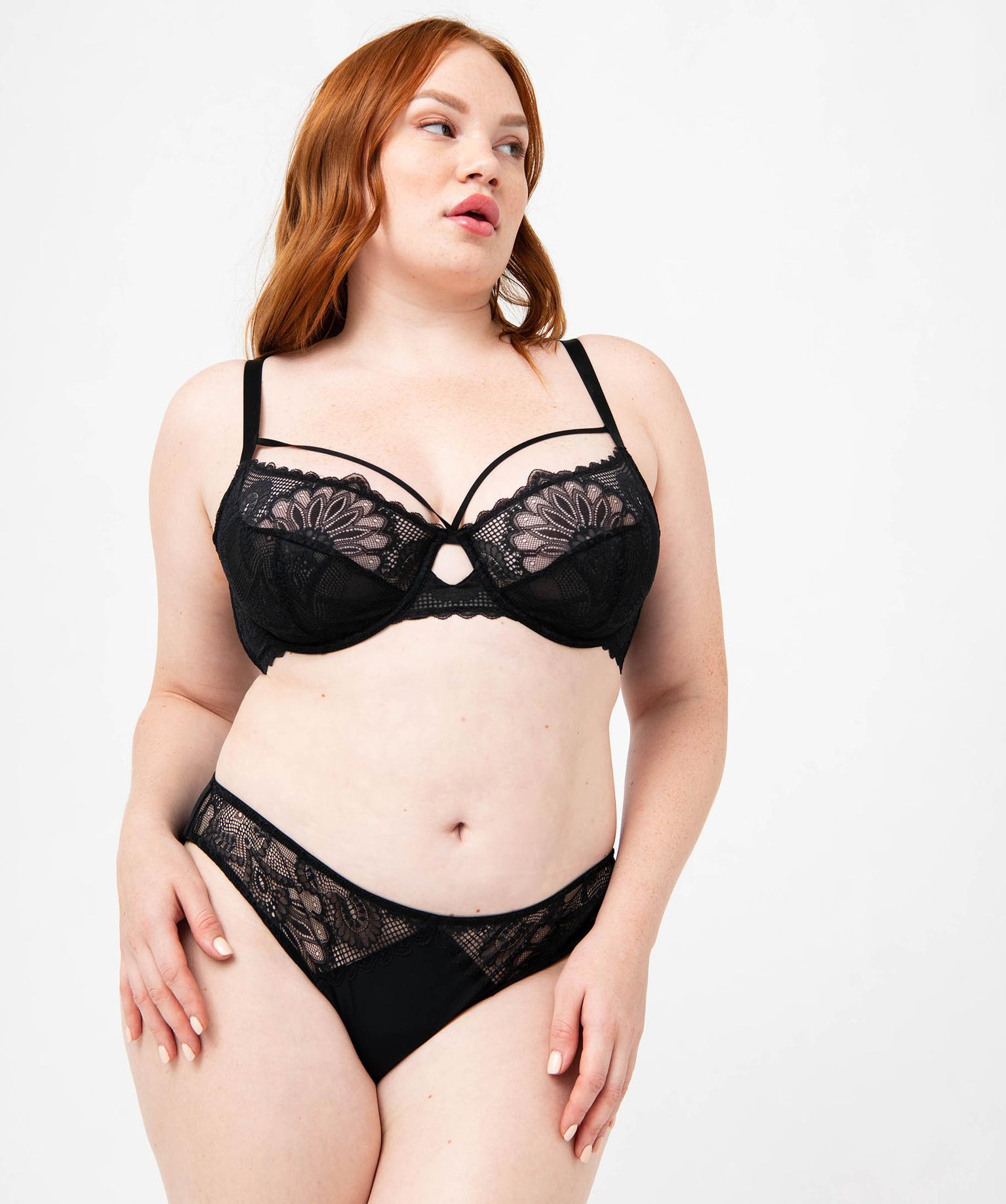 Ce soutien-gorge spécial grande taille (du 100D au 115F) offre aux poitrines généreuses un maintien optimal. Un soutien-gorge emboitant à armatures doté d’un entre-bonnet haut et d’un large tour de buste. Ses bonnets souples en dentelle offrent un décolleté parfaitement naturel. Sur le décolleté, deux fines brides élastiques ajoutent une note particulièrement sexy au modèle. Un joli soutien-gorge en dentelle à porter avec la culotte assortie.