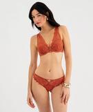 Ce soutien-gorge push-up sublime naturellement la poitrine tout en offrant un confort parfait. Ses bretelles foulard mettent en valeur un décolleté profond en l'habillant de d’une fine dentelle qui joue sur la transparence avec élégance. Les bonnets à armatures et paddés, assurent un galbe harmonieux et un maintien idéal. Pour votre confort, les bretelles sont ajustables et le dos se règle sur trois positions grâce à deux agrafes. Un petit bijou doré vient illuminer l’entre-bonnet ajouré, pour une touche féminine et raffinée.