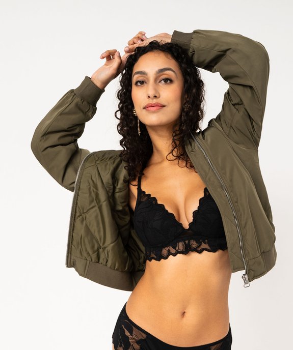 Mix de tulle et de dentelle moderne, décolleté renversant, bonnets confortables, ce soutien-gorge sans armatures va vous ravir ! Sa forme push-up avec bonnets rembourrés rehausse et rapproche votre poitrine pour un effet pigeonnant. On aime par-dessus tout la dentelle qui habille délicatement tout le tour du buste. Un soutien-gorge push-up à porter avec la culotte assortie pour un ensemble glamour.
