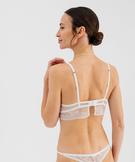 Hit-mode depuis plusieurs saisons, le soutien-gorge triangle allie sensualité et élégance avec ses bonnets souples offrant un décolleté très naturel. Ce modèle en dentelle est doté de coussinets amovibles permettant d’augmenter sensiblement le volume de la poitrine. De fins cordons élastiques, subtilement croisés à l’entrebonnet et sculptant la partie bombée de la poitrine, ajoutent une touche de séduction contemporaine. Ce soutien-gorge sans armatures possède une large bande de dentelle, délicatement posée autour du buste, qui confère à l’ensemble un charme romantique et une allure résolument féminine.