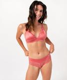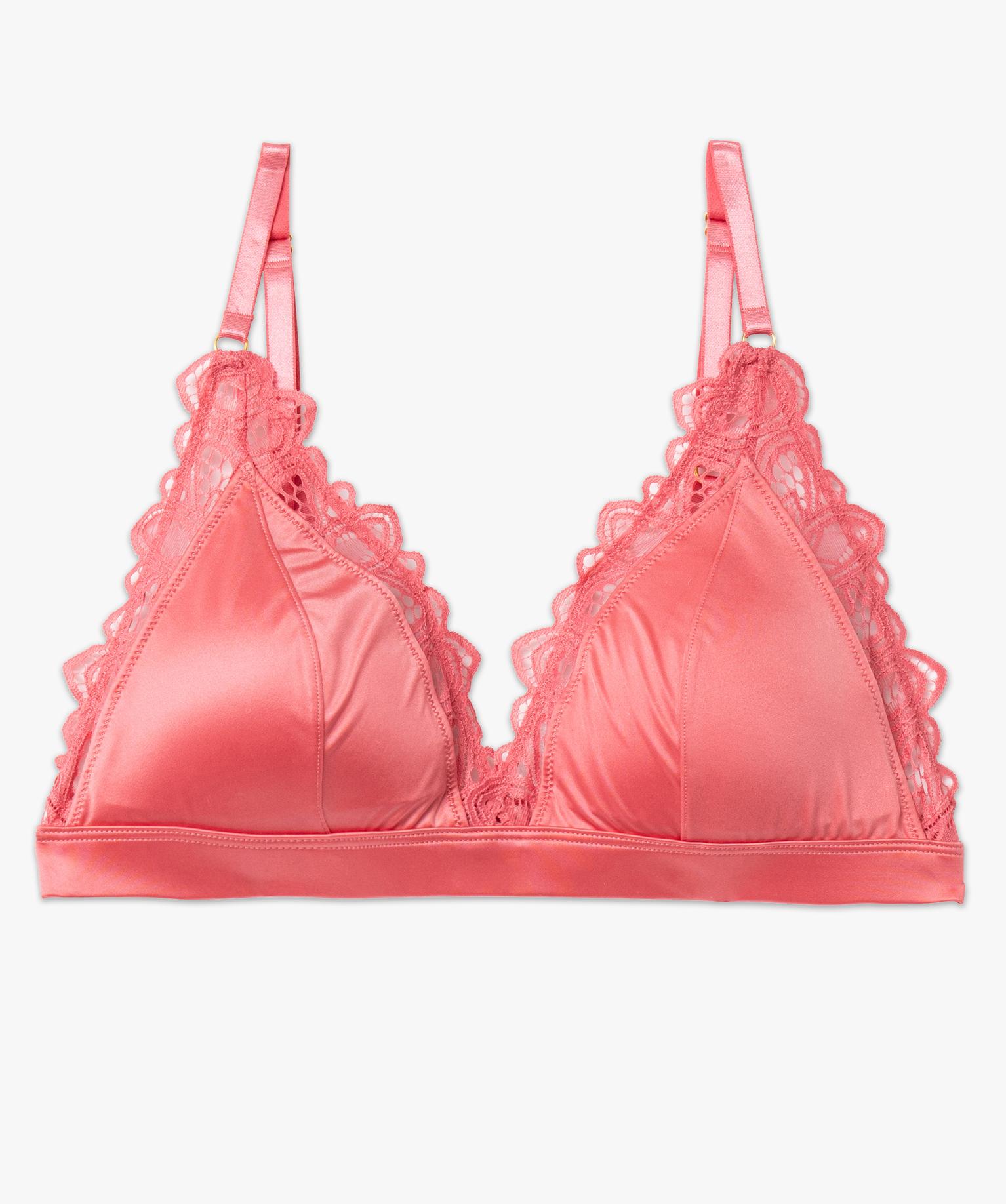 Soutien-gorge triangle en satin et dentelle avec mousses amovibles rose
