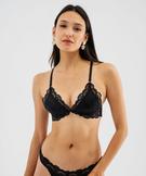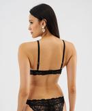 Un sublime soutien-gorge triangle spécialement prévu pour mettre en valeur les poitrines menues. Doté de mousses légèrement rembourrées, ce soutien-gorge sans armatures offre un effet push-up permettant de gagner une taille de bonnet. Confectionné en dentelle subtilement irisée et doté de bretelles fantaisie avec anneaux rectangles, il apporte une touche de modernité dans votre collection de lingerie.