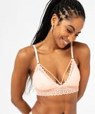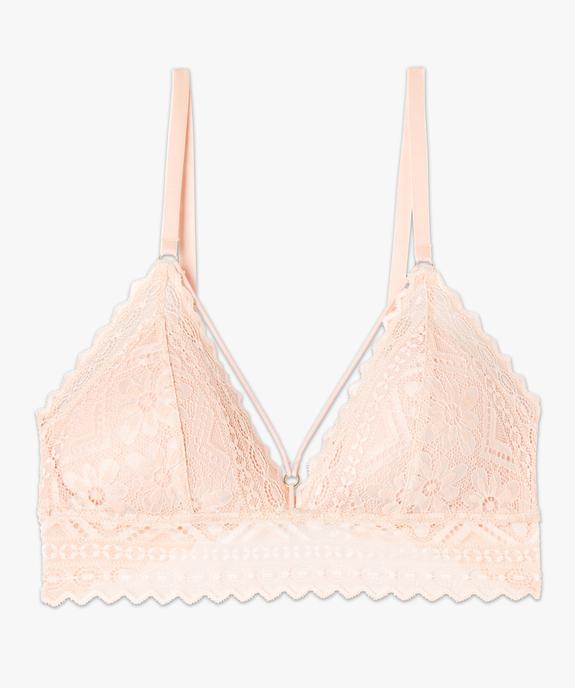 Soutien-gorge triangle sans armatures en dentelle à mousses amovibles femme peche