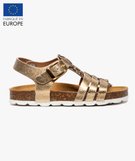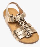 Cette paire de sandales façon spartiates se distingue par l'originalité de sa tige : un aspect texturé doré se partage le devant de la scène avec un motif léopard. Tellement fashion ! Équipées d'une semelle intérieure anatomique et d'une boucle de réglage sur le côté externe de la cheville, ces sandales sont aussi confortables que belles. À porter au quotidien avec toute la garde-robe !