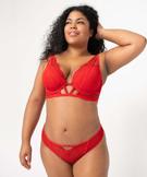 String femme grande taille en dentelle et tulle avec découpes fantaisie rouge