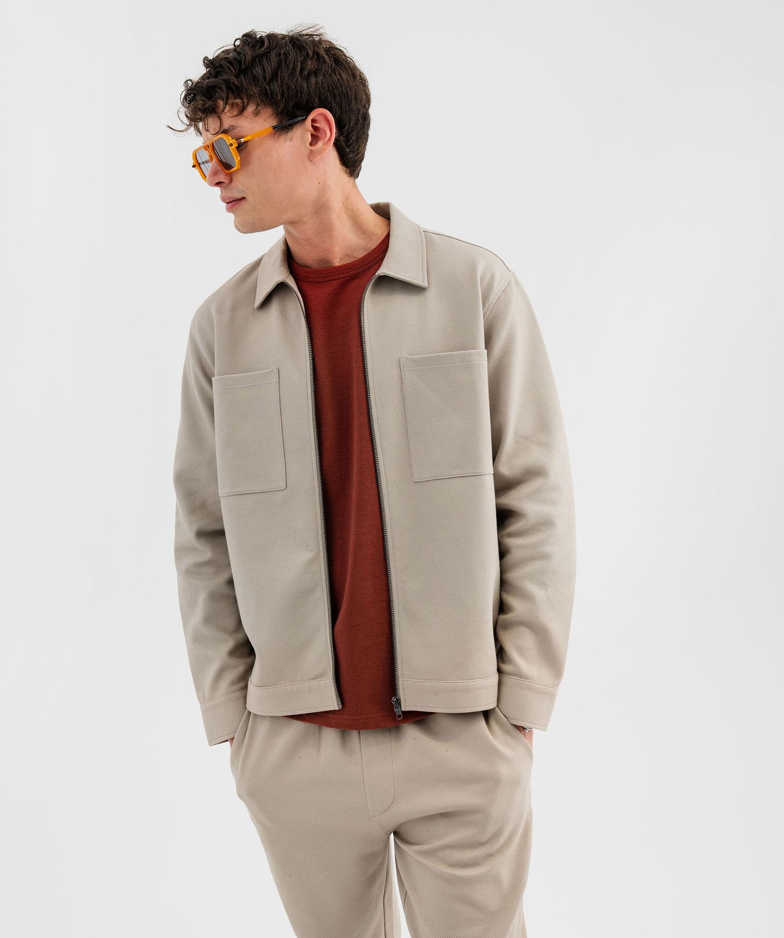 Surchemise zippée en maille extensible homme beige clair