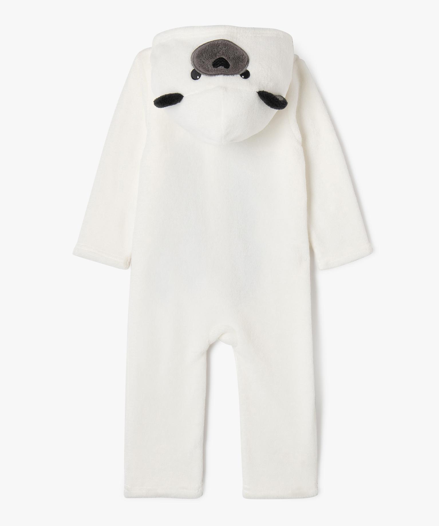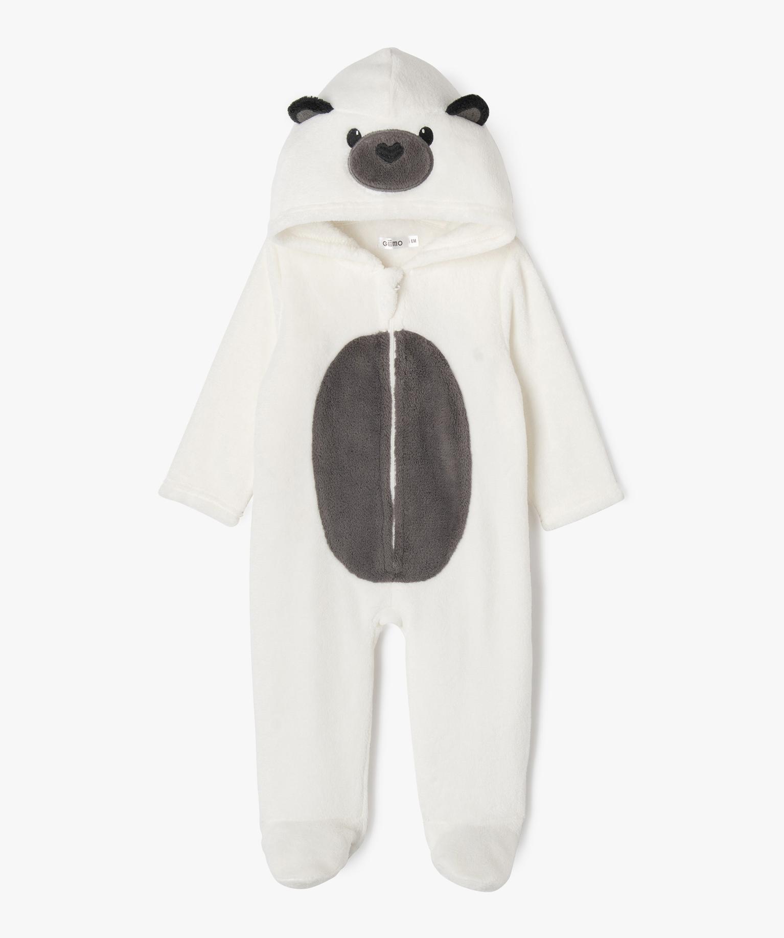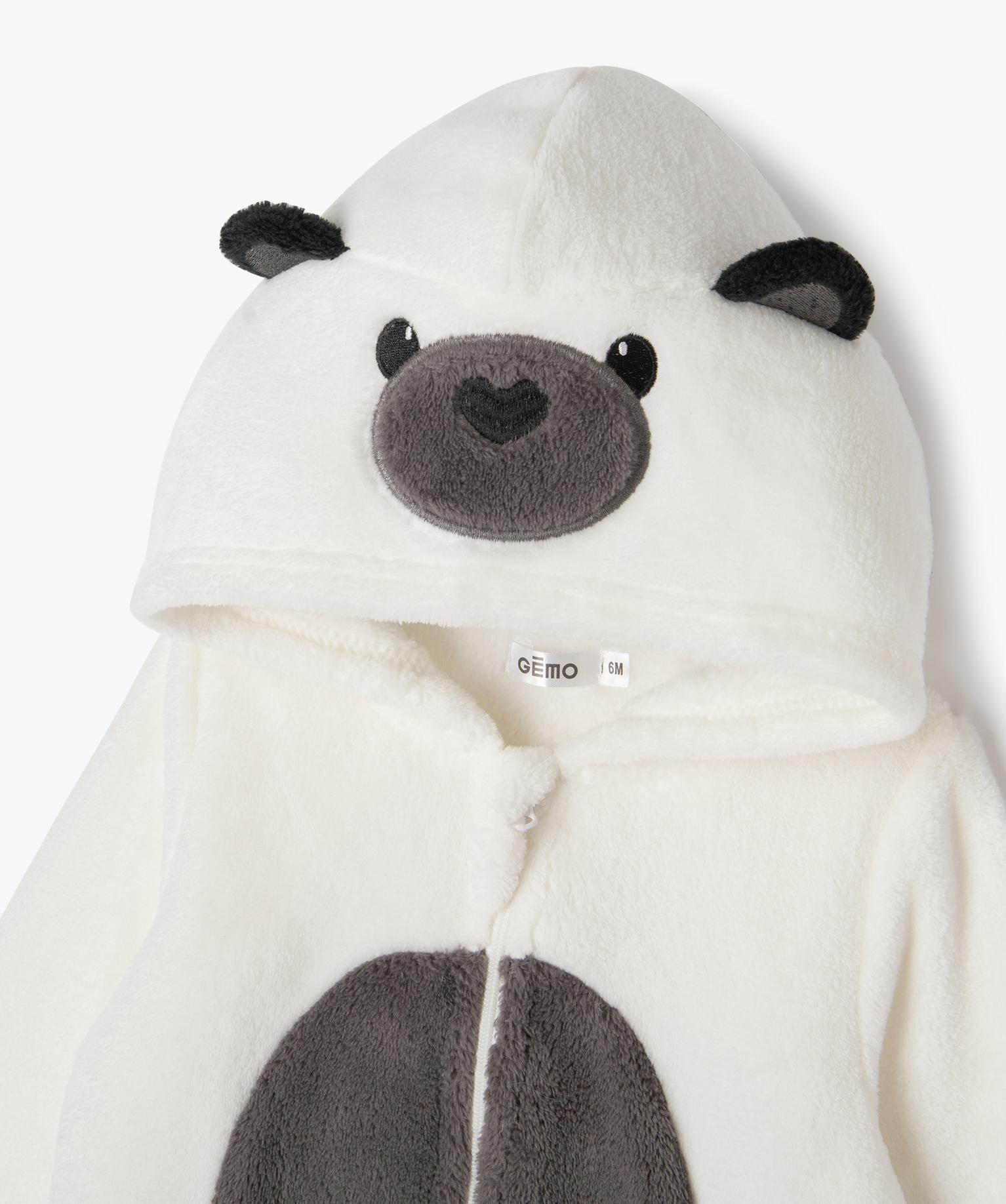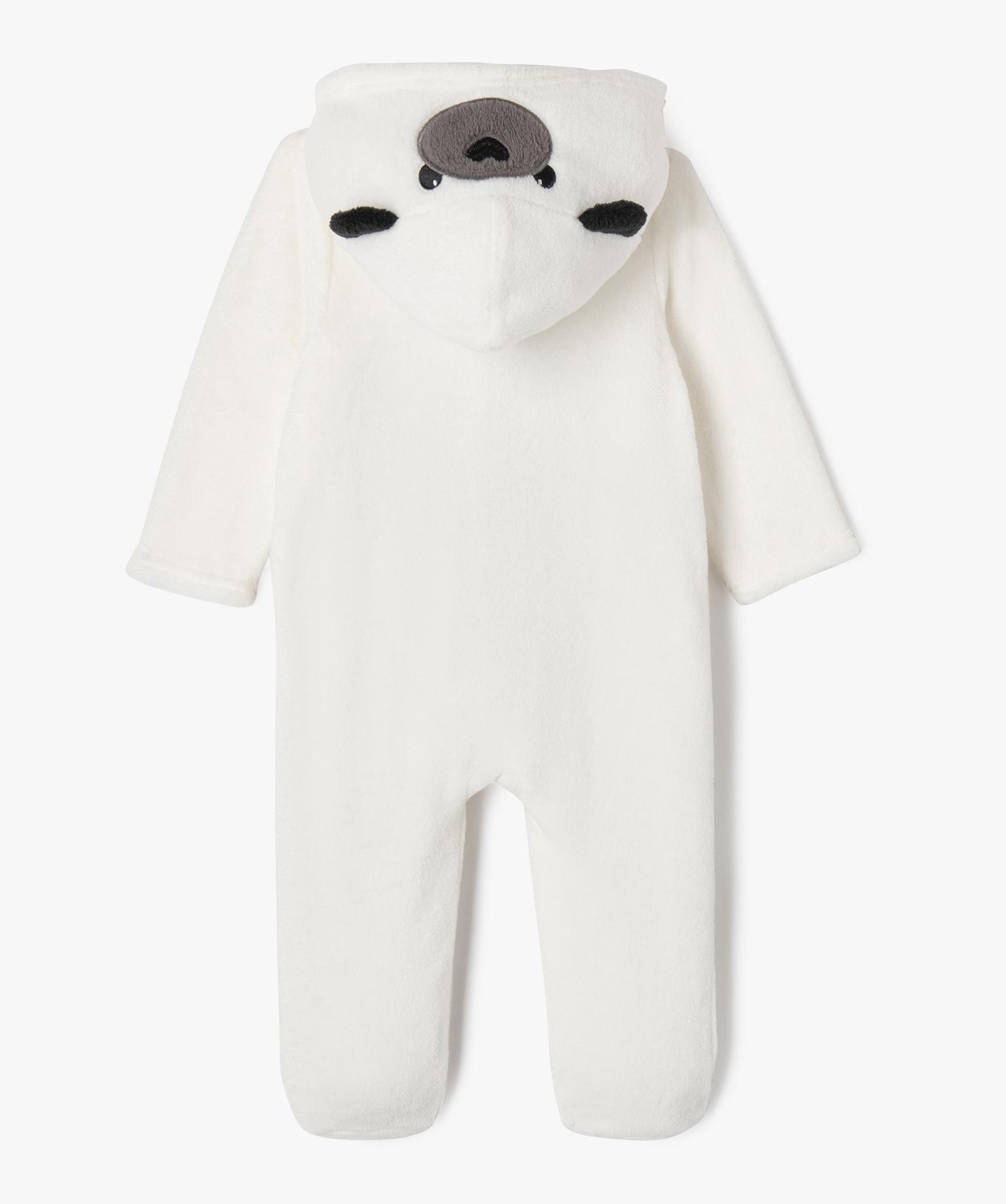 Surpyjama en maille peluche à capuche animée bébé ecru