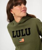 LuluCastagnette s’impose avec style dans le vestiaire sportswear des femmes grâce à ce joli sweat à capuche. Un sweat femme chaud et confortable avec intérieur molletonné, large poche kangourou et finitions en bord-côte aux poignets et dans le bas. Il est décoré d’une inscription en maille bouclette brodée sur le buste et d’un écusson inspiré du drapeau américain. Ce sweat LuluCastagnette sera le meilleur allié d’un jean et d’une paire de baskets. Logo en métal brodé dans le bas.