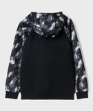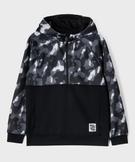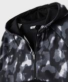 Ce sweat à capuche s’impose comme une pièce phare du vestiaire streetwear avec son mélange audacieux d’empiècements unis et imprimés camouflage. Confectionné dans une matière confortable enrichie de viscose, ce sweat garçon offre un toucher ultra doux. Il est doté d’un col montant fermé par un zip et de deux poches dissimulées dans les coutures, ajoutant une touche pratique à sol look résolument urbain. Cordons fantaisie au bord de la capuche. Etiquette brodée dans le bas.