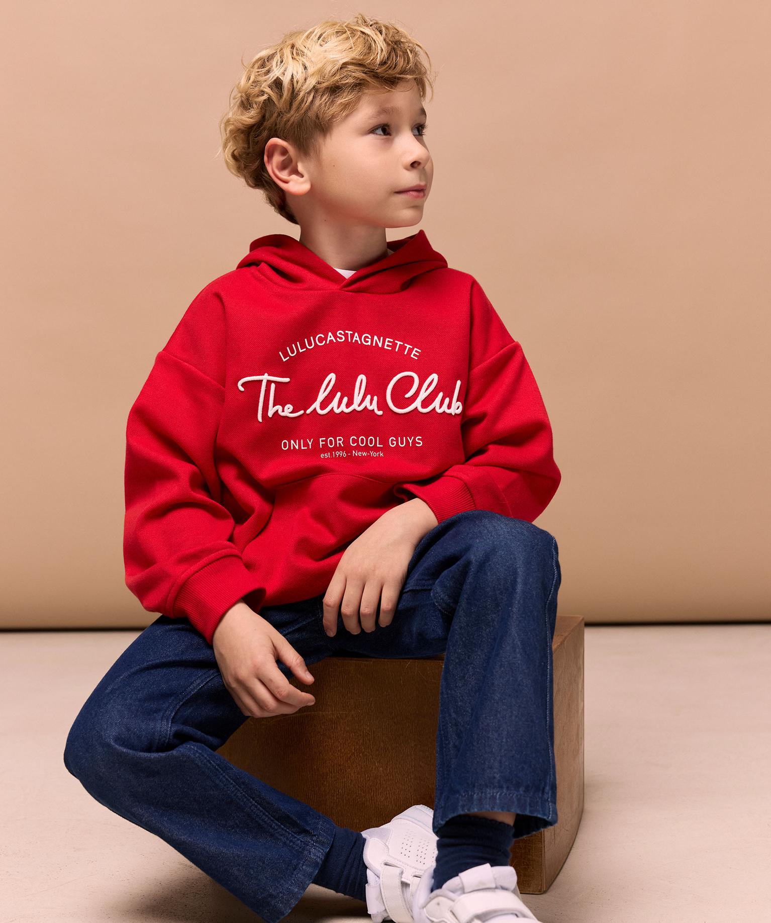 Sweat à capuche avec inscription brodée garçon - LuluCastagnette rouge