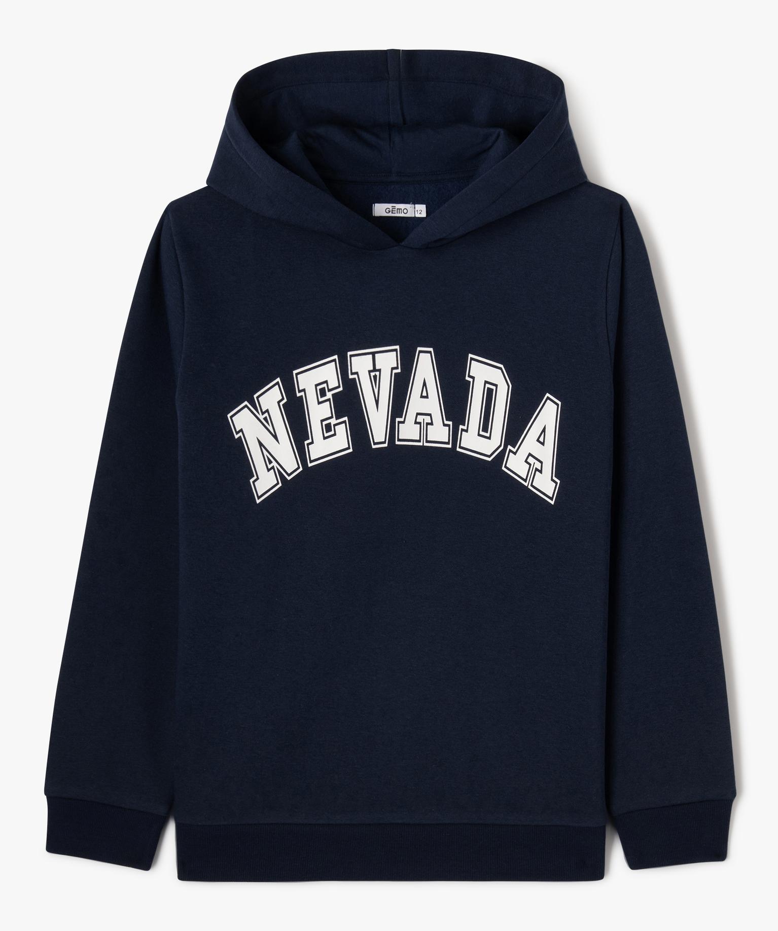 Gémo présente un sweat à petit prix qui ne manque pas de style avec son inscription inspirée des Etats-Unis sur le buste. Un sweat à capuche avec intérieur molletonné et capuche doublée jersey. Ce sweat garçon s’accordera avec tous les pantalons du vestiaire, qu’il s’agisse d’un pantalon de jogging, d’un jean ou d’un chino. Finitions bord-côte.