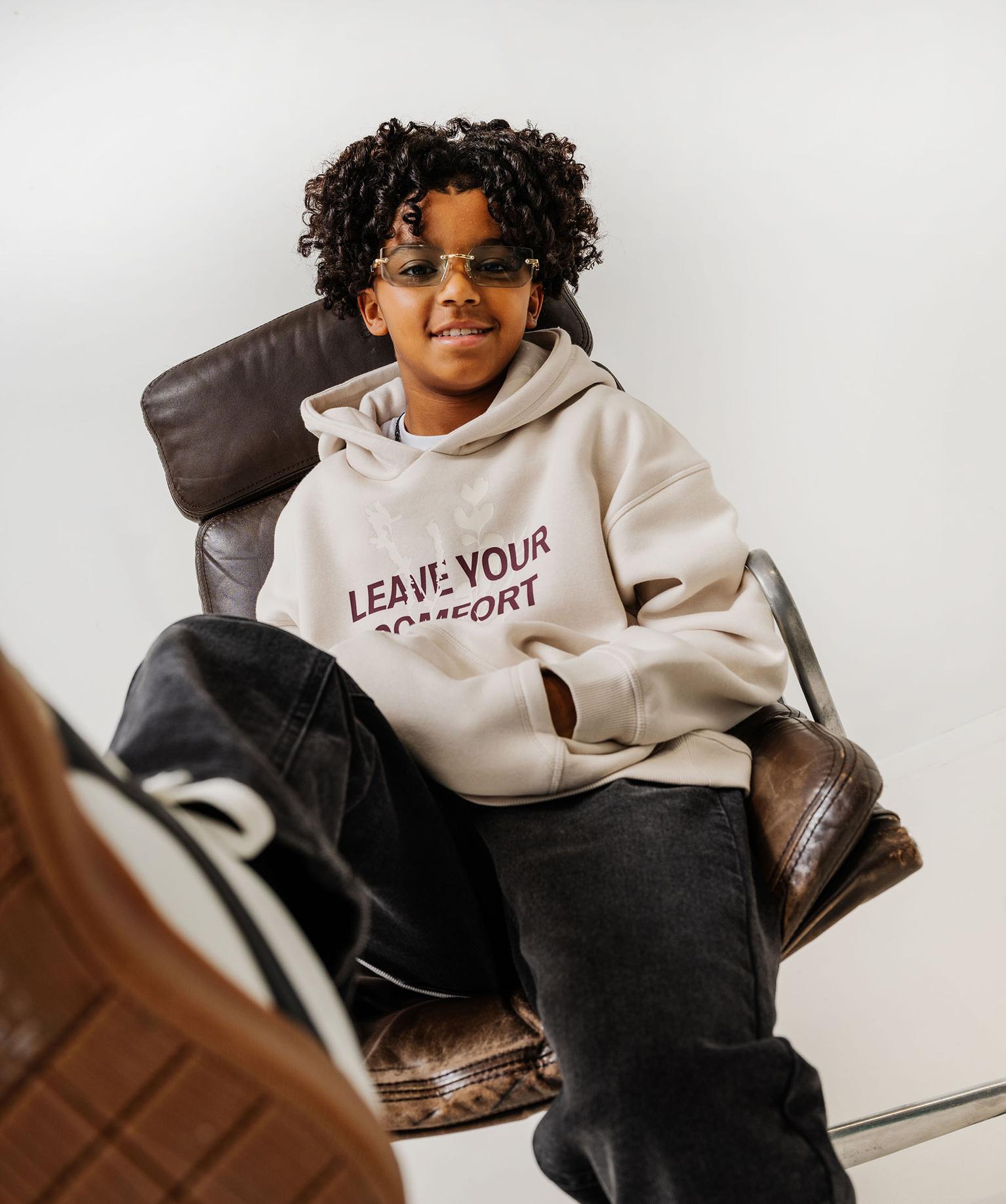Sweat à capuche avec inscription sur le buste garçon ecru