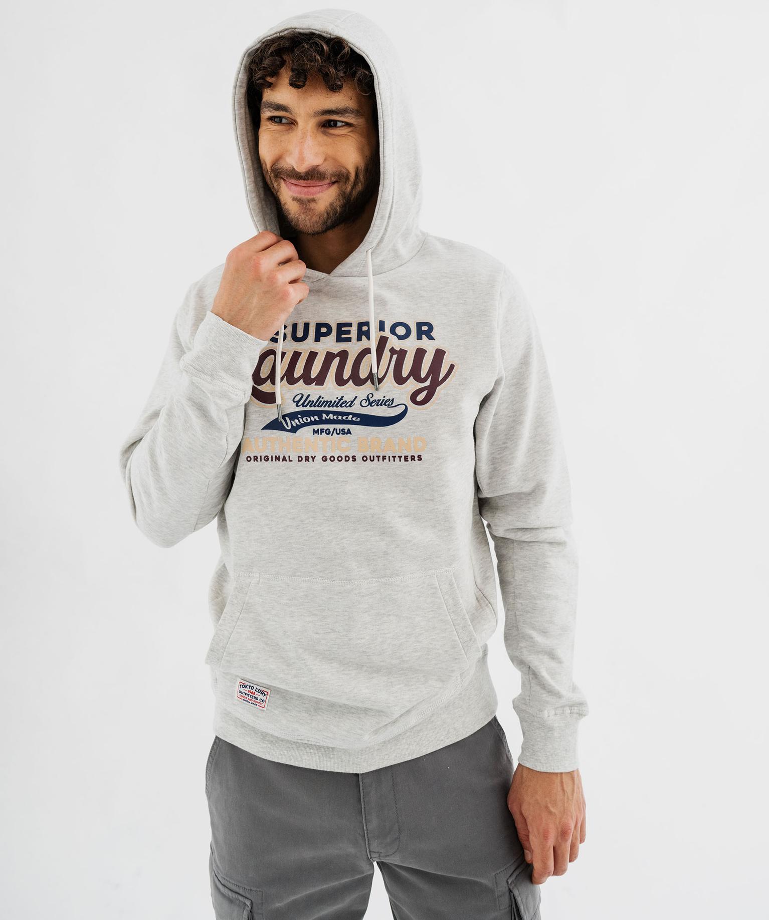 Tokyo Laundry, la marque connue pour son mélange unique d’influences britanniques et vintage américaines, propose ici un sweat pour homme au look original. Un sweat fidèle aux codes de l’univers sportswear avec intérieur molletonné, capuche doublée jersey et grande poche kangourou. Reconnaissable d’un seul coup d’oeil, il arbore une large inscription signature sur le buste et un petit logo brodé dans le bas. Un sweat à capuche à porter aussi bien avec un pantalon de jogging qu’avec un jean ou un pantalon baggy pour alterner style sportsweat et streetwear. Dos uni. Finitions en bord-côte.