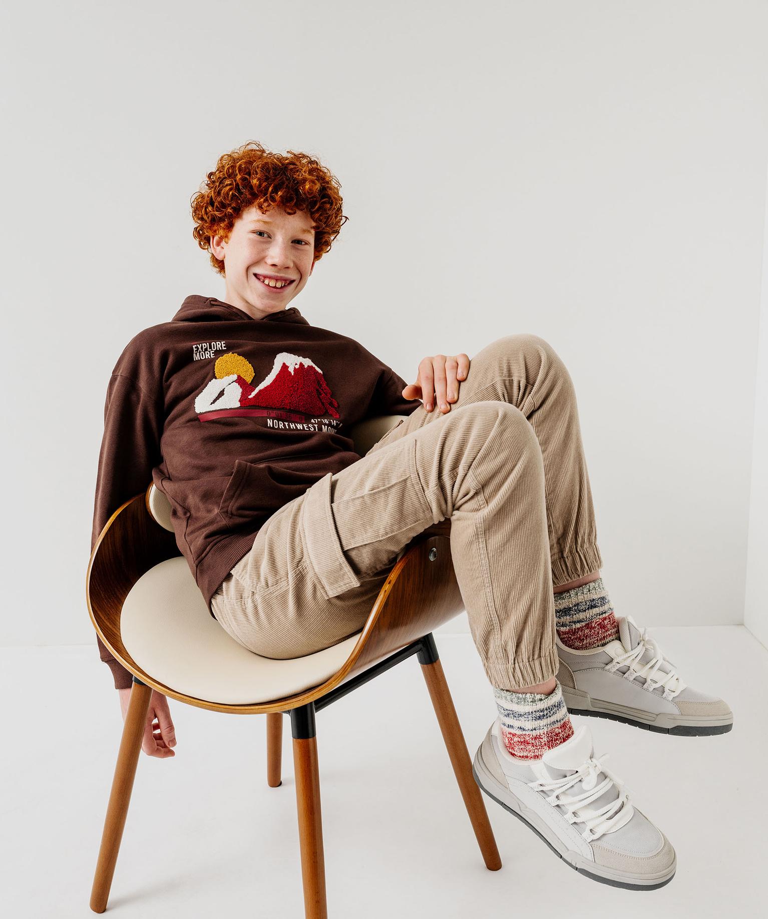 Les ados en quête d’aventure vont craquer pour ce sweat à capuche orné d’un large motif montagne en maille bouclette. Un sweat garçon qui reste fidèle aux codes du sweat classique, arborant une large poche kangourou et des finitions en bord-côte aux poignets et dans le bas. Il possède un intérieur molletonné et une capuche doublée pour un maximum de confort. Un sweat ado à porter avec un pantalon cargo et des boots.