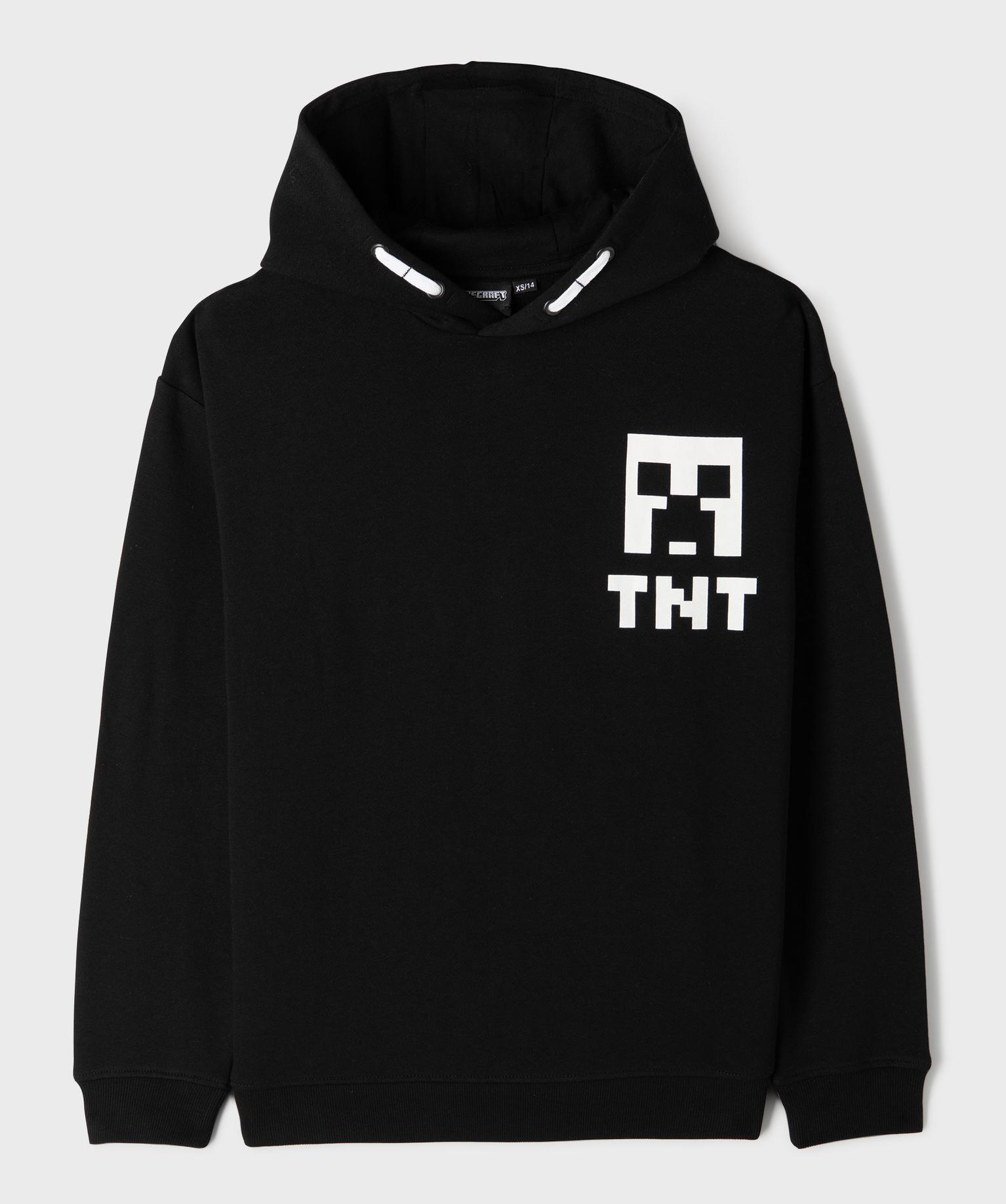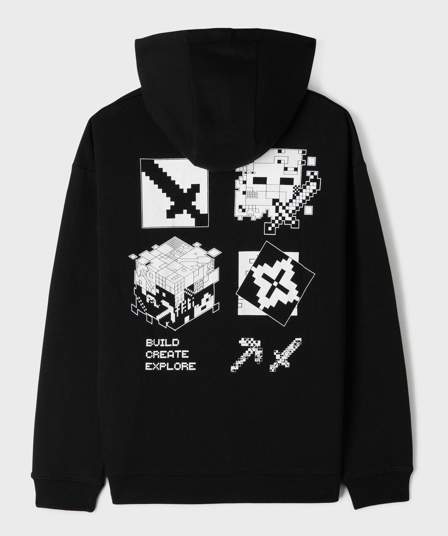 Sweat à capuche avec motif poitrine et dos garçon - Minecraft noir