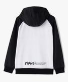 Ce sweat garçon se distingue par son look sportif mixant les couleurs et les matières à la perfection. Confectionné en molleton, il est agrémenté d’empiècements en toile sur les manches, la capuche et sur l’avant. Un sweat de sport avec col zippé et poches dissimulées dans les coutures. Il s’associe à un pantalon de jogging et une paire de baskets.