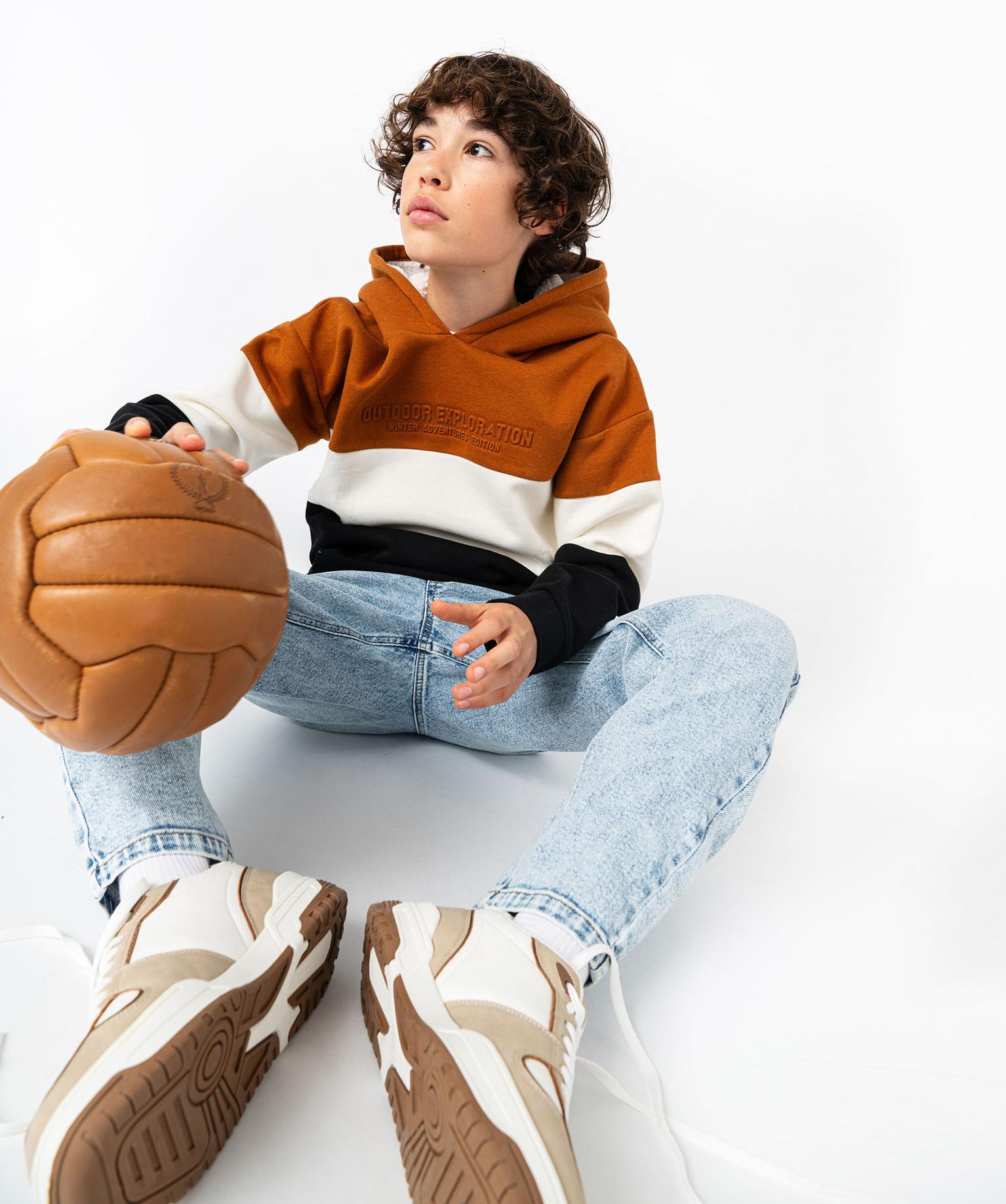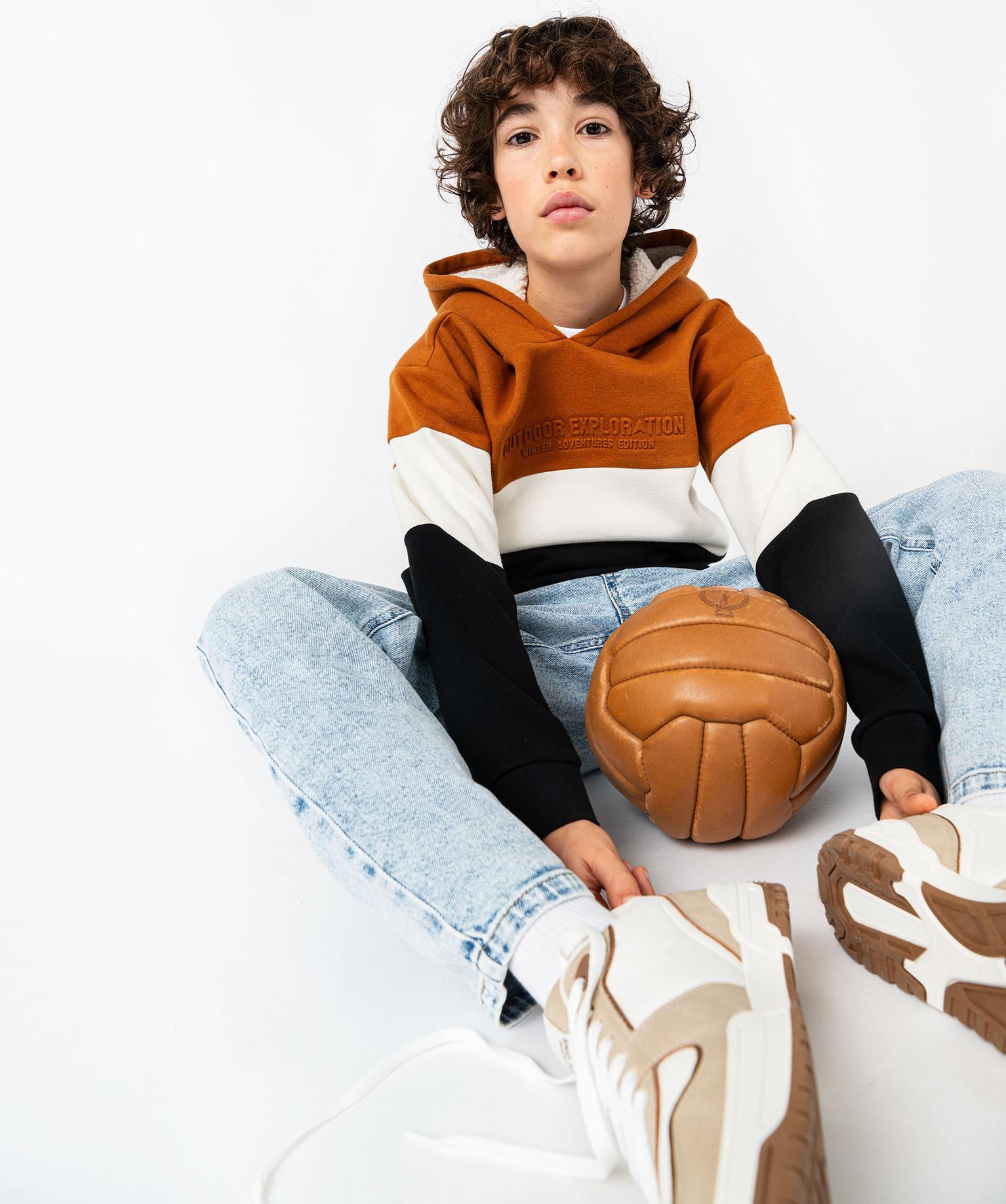 Ce sweat molletonné est un véritable cocon de douceur pour les ados. Il est doté d'une capuche doublée de maille sherpa qui les enveloppera de chaleur et de confort. L'inscription d'inspiration outdoor en relief sur le buste ajoute une touche de caractère à ce sweat garçon, rappelant les expéditions en montagne et les randonnées en forêt, un vêtement parfait pour les adolescents qui recherchent un style authentique et décontracté. Ce sweat à capuche se porte avec un jean et des chaussures de randonnée. Finitions bord-côte aux poignets et dans le bas.