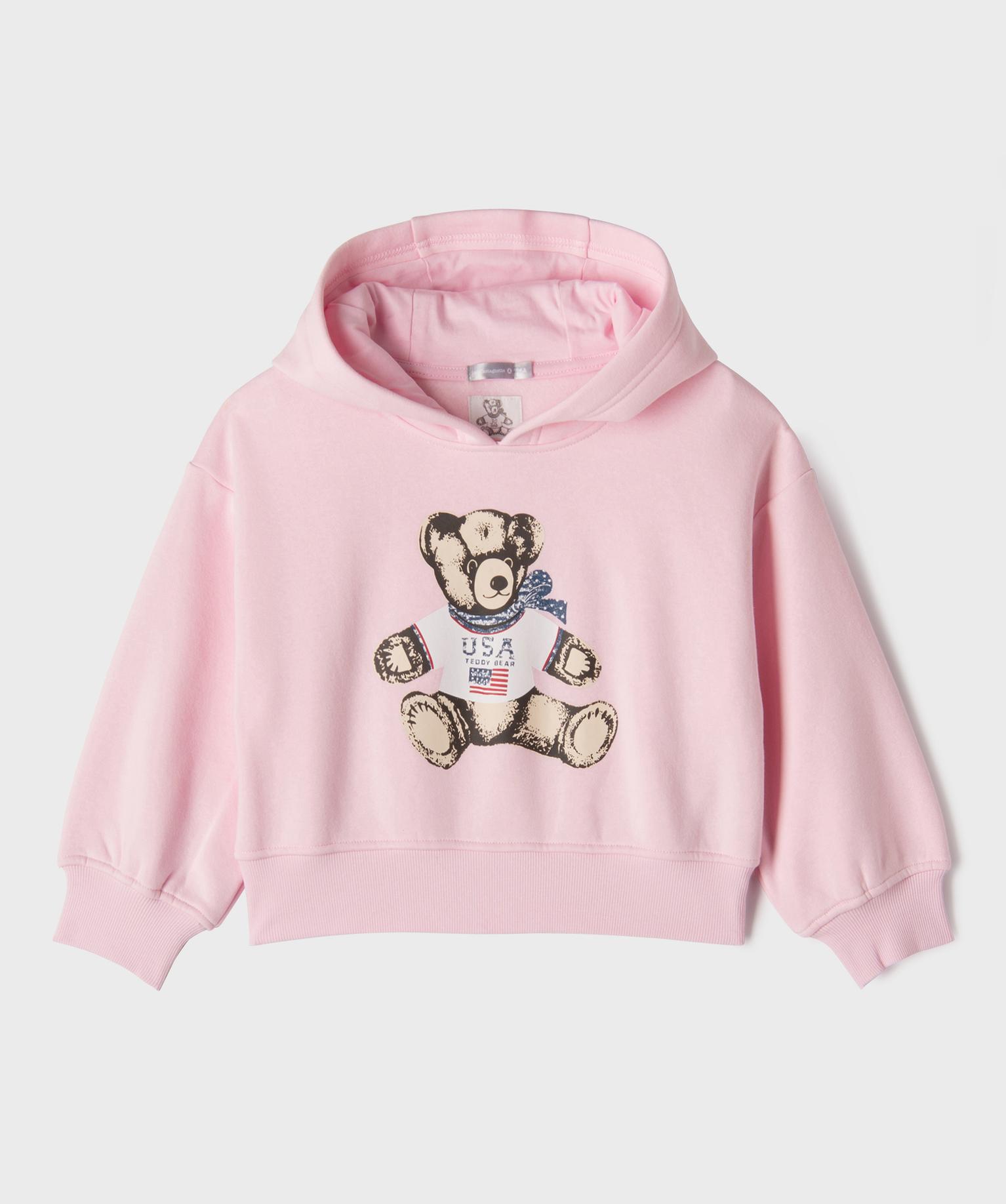 Sweat à capuche court fille - LuluCastagnette x Alizée rose clair