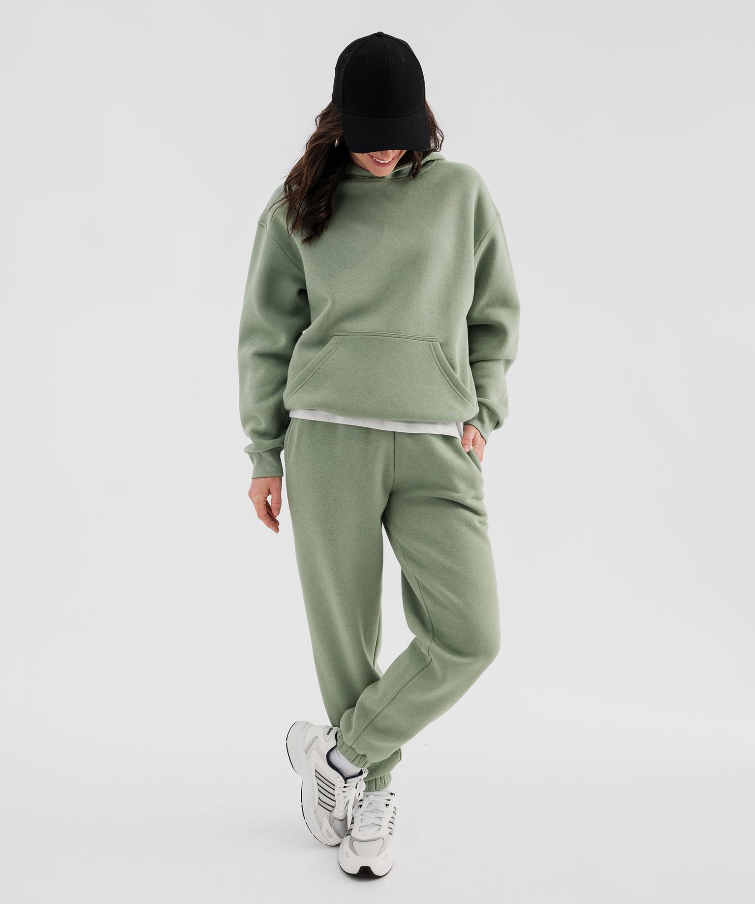 Sweat à capuche en molleton uni femme vert clair