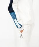 Capuche doublée jersey, ajustable par cordon. Détails œillets et embouts en métal. Poche kangourou devant. Petit print rétroréfléchissant à la poitrine. Finition bord-côte aux poignets et dans le bas.