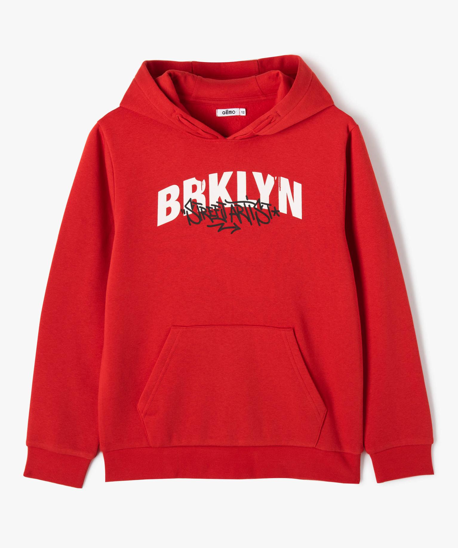 Jolie version imprimée du sweat garçon dans un style streetwear avec inscriptions tendance, qui diffèrent selon les coloris. Ce sweat à capuche à la coupe indémodable trouvera facilement sa place dans le vestiaire des ados. Sa couleur intense ajoute une touche de pep’s aux looks quotidiens. Ce sweat molletonné douillet possède une capuche doublée jersey, des finitions en bord-côte aux poignets et dans le bas, ainsi qu'une poche kangourou.