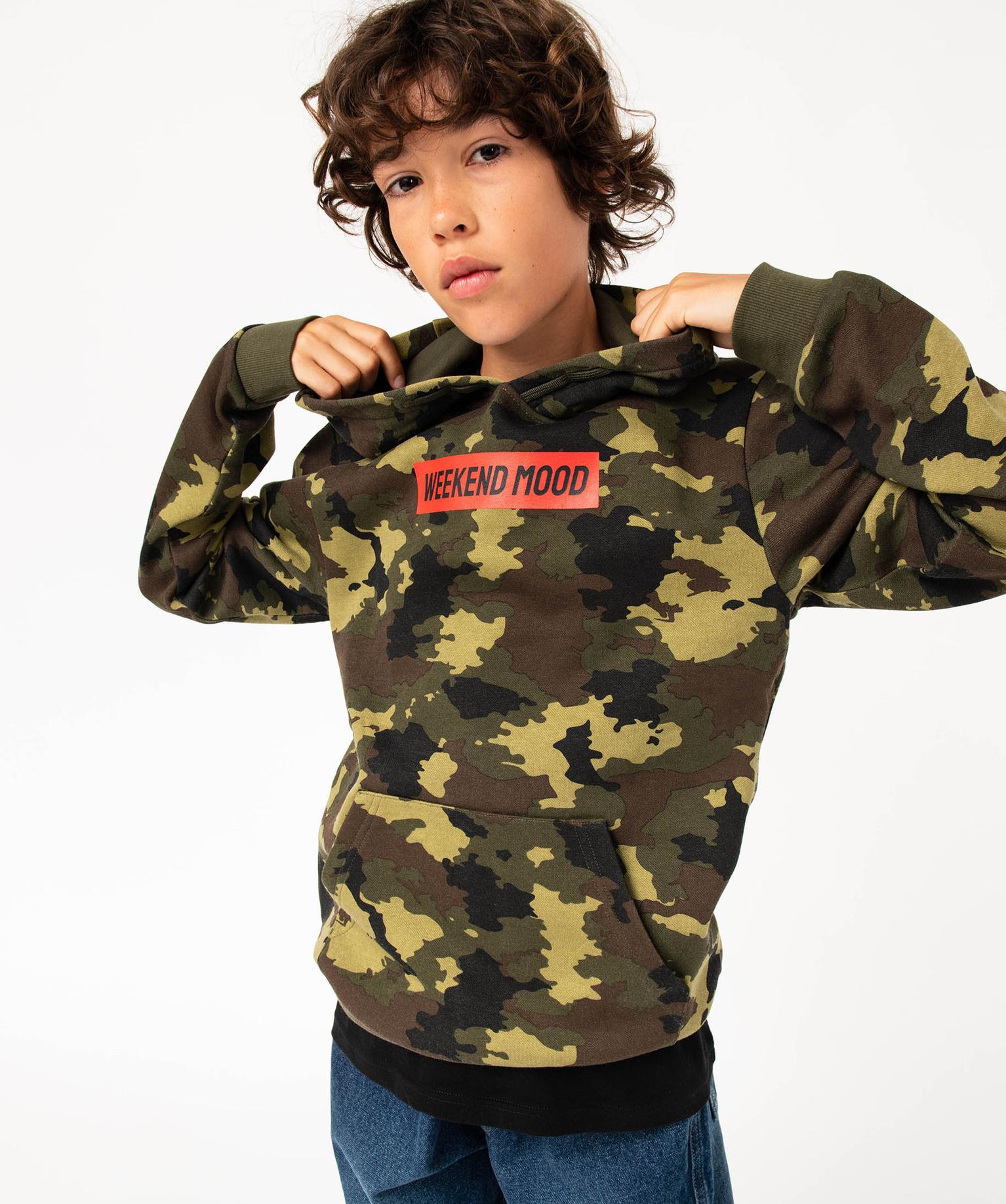 Jolie version imprimée du sweat garçon dans un style streetwear avec inscriptions tendance, qui diffèrent selon les coloris. Ce sweat à capuche à la coupe indémodable trouvera facilement sa place dans le vestiaire des ados. Sa couleur intense ajoute une touche de pep’s aux looks quotidiens. Ce sweat molletonné douillet possède une capuche doublée jersey, des finitions en bord-côte aux poignets et dans le bas, ainsi qu'une poche kangourou.