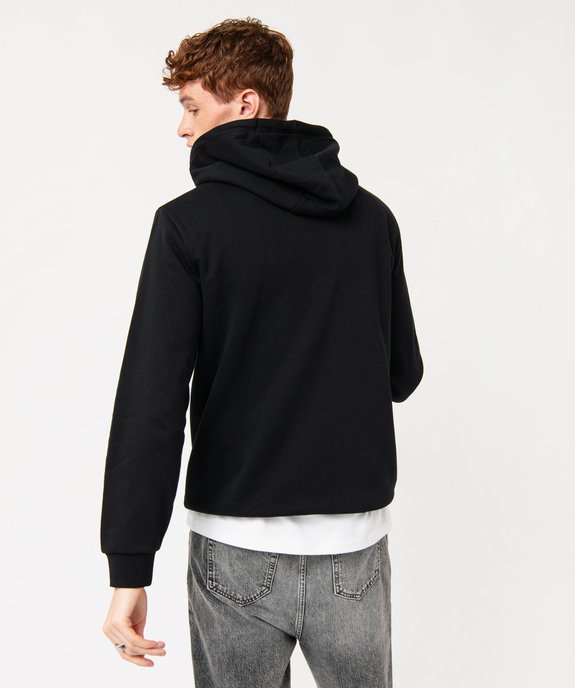 Gémo réédite le traditionnel sweat à capuche pour homme. Un must-have du dressing sportswear que vous porterez aussi bien sur un stade avec un pantalon de jogging, qu’en ville avec un jean. Un sweat molletonné pour offrir toujours plus de confort. On craque pour sa coupe ample, sa capuche ajustable par cordon coulissant dans des œillets métalliques et sa large poche kangourou molletonnée. Finitions bord-côte aux poignets et dans le bas.