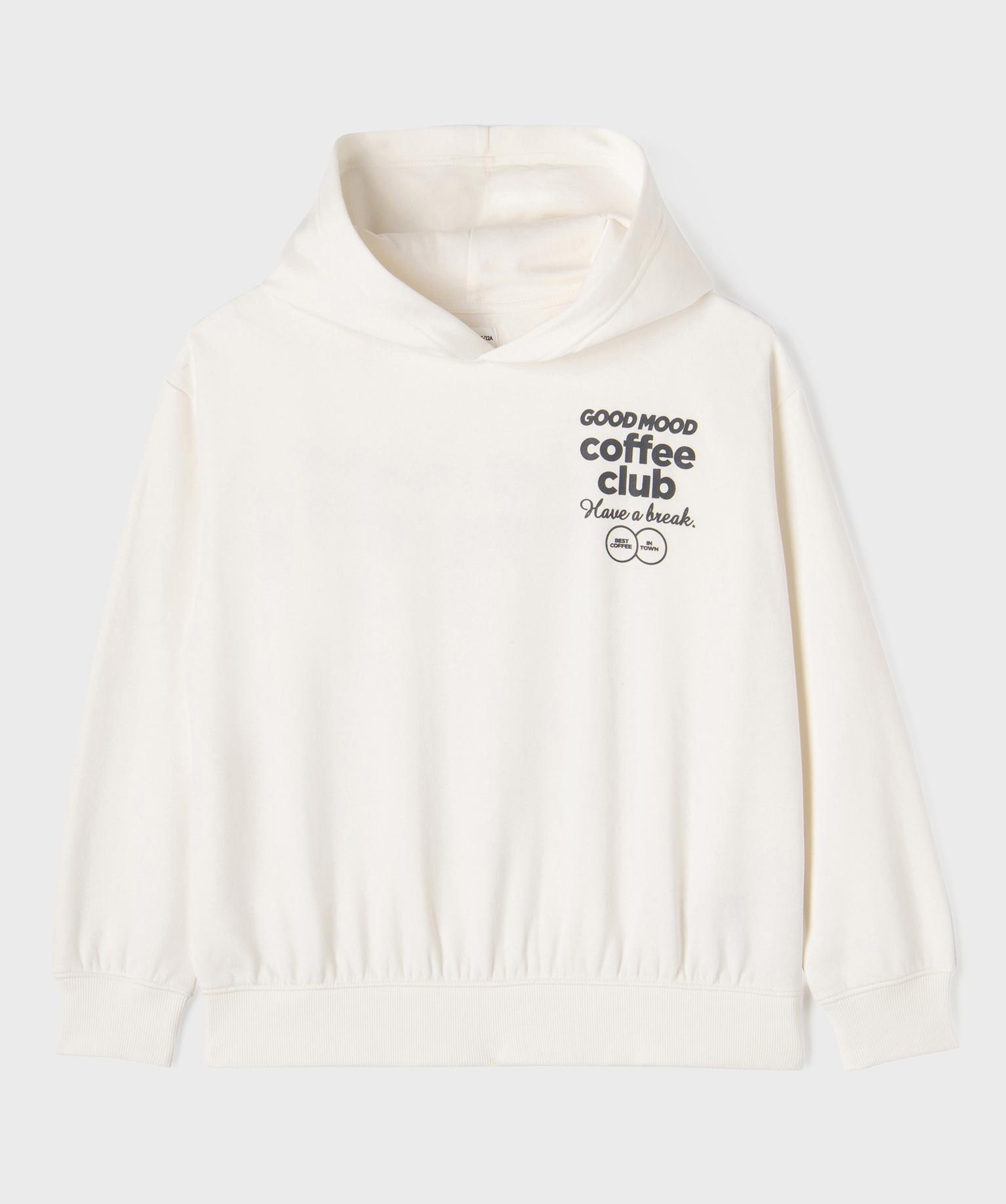 Sweat à capuche loose imprimé devant et dos fille blanc