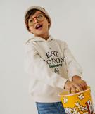 Sweat à capuche motif tennis garçon ecru