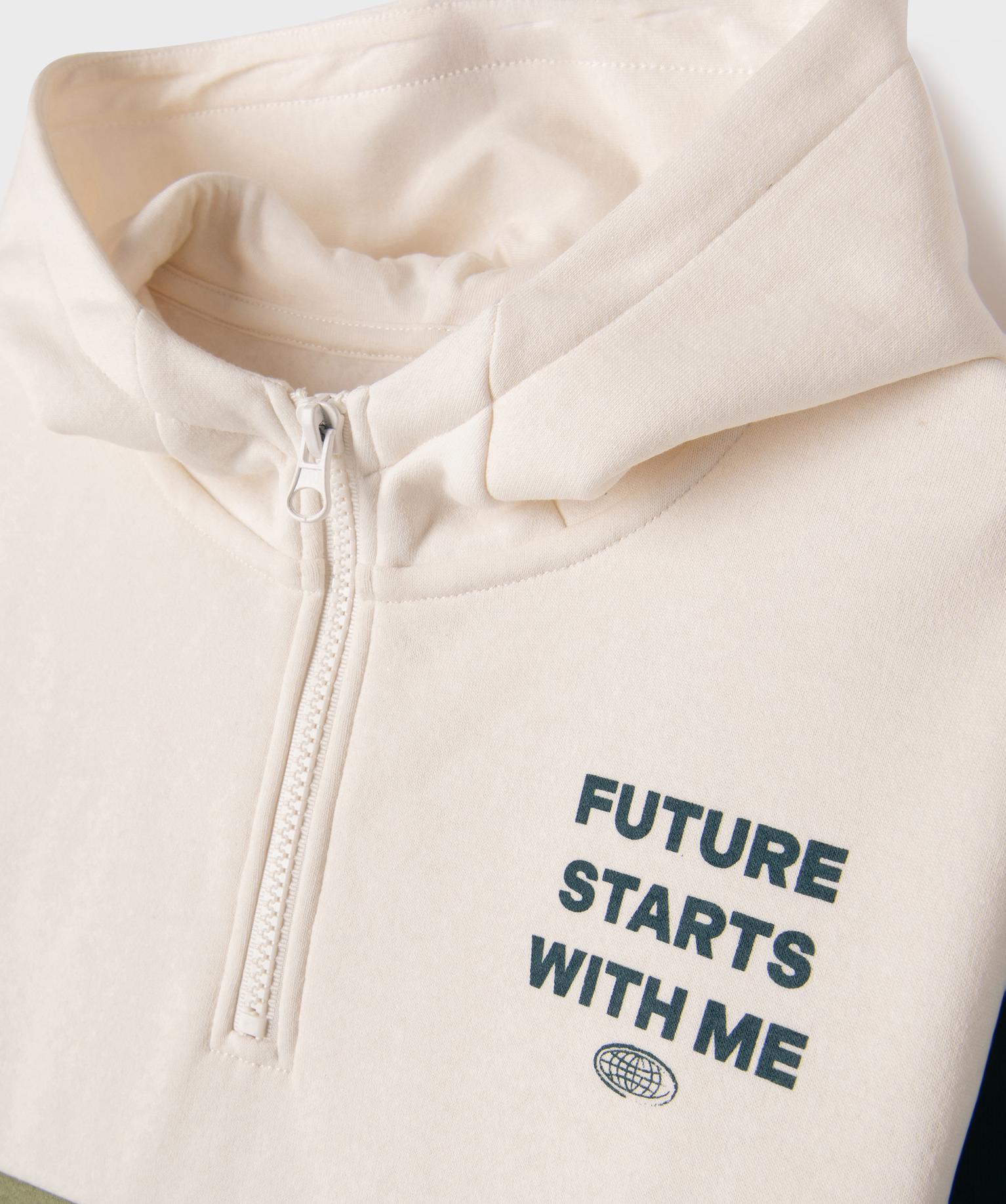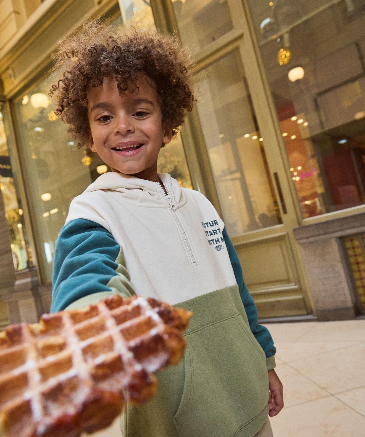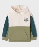 Ce sweat à capuche pour garçon affiche un style résolument streetwear. Son design color block apporte une touche graphique forte, inspirée de l’univers urbain. Confectionné dans une matière douce et confortable, avec intérieur molletonné, il offre chaleur et liberté de mouvement au quotidien. Ce sweat tricolore, avec inscription sur la poitrine, possède une capuche avec col zippé qui permet de moduler l’ouverture du col et une large poche kangourou. À porter avec un jean large ou un pantalon de jogging pour une silhouette urbaine tendance et assumée. Bas fendu sur les côtés.