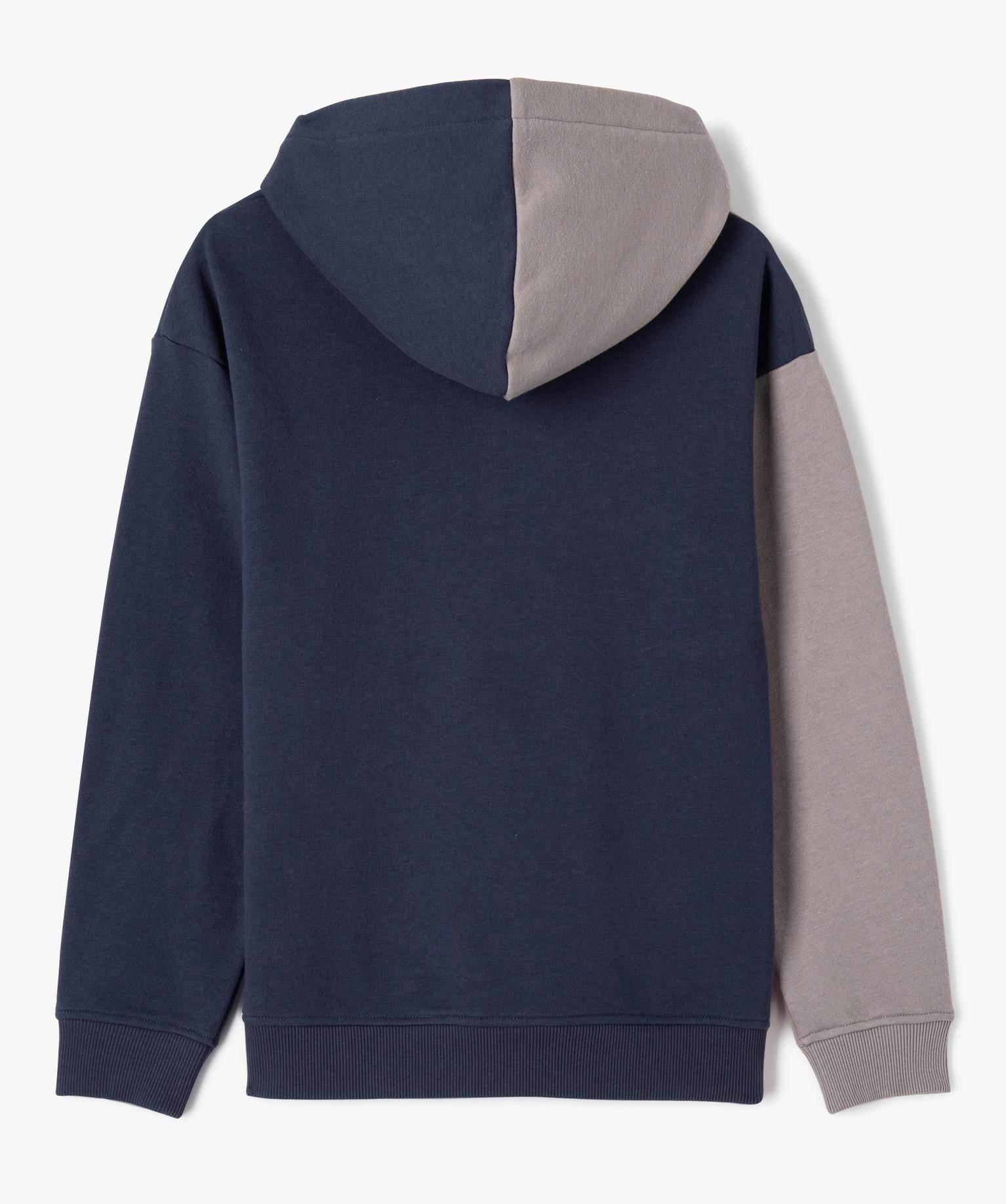Le sweat à capuche s’affiche dans une version tricolore pour twister le vestiaire sportswear des ados. Ce sweat garçon se compose de deux empiècements de coloris différents sur le haut du buste, et d’un troisième empiècement dans le bas. Un sweat avec manches de couleurs différentes au look original mais qui conserves les codes du genre avec sa poche kangourou et ses finitions bord-côte aux poignets et dans le bas. Son intérieur bouclette non molletonné lui permet d’être porté en toutes saisons. Ce sweat tricolore sera le meilleur allié d’un pantalon de jogging ou d’un jean. Inscription sur la poitrine.