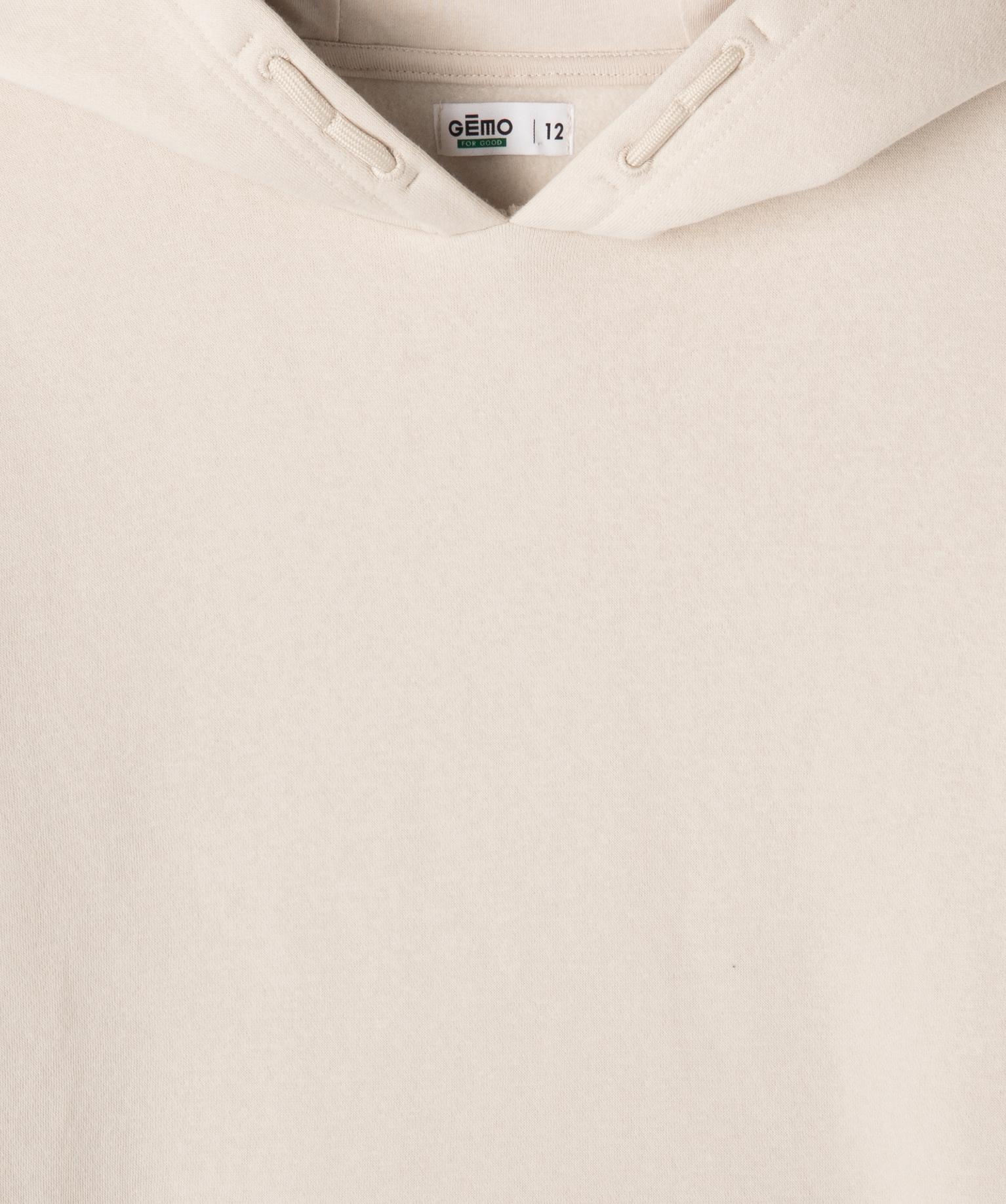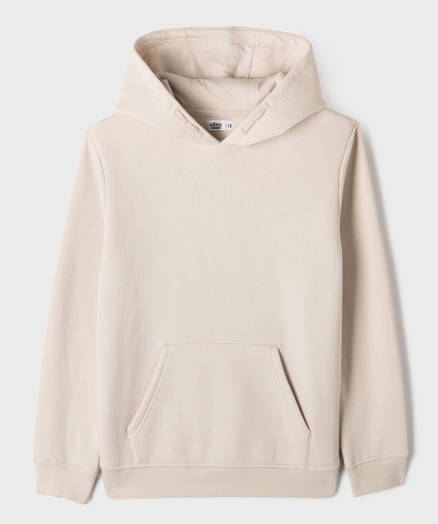 Sweat à capuche uni intérieur molletonné garçon beige clair