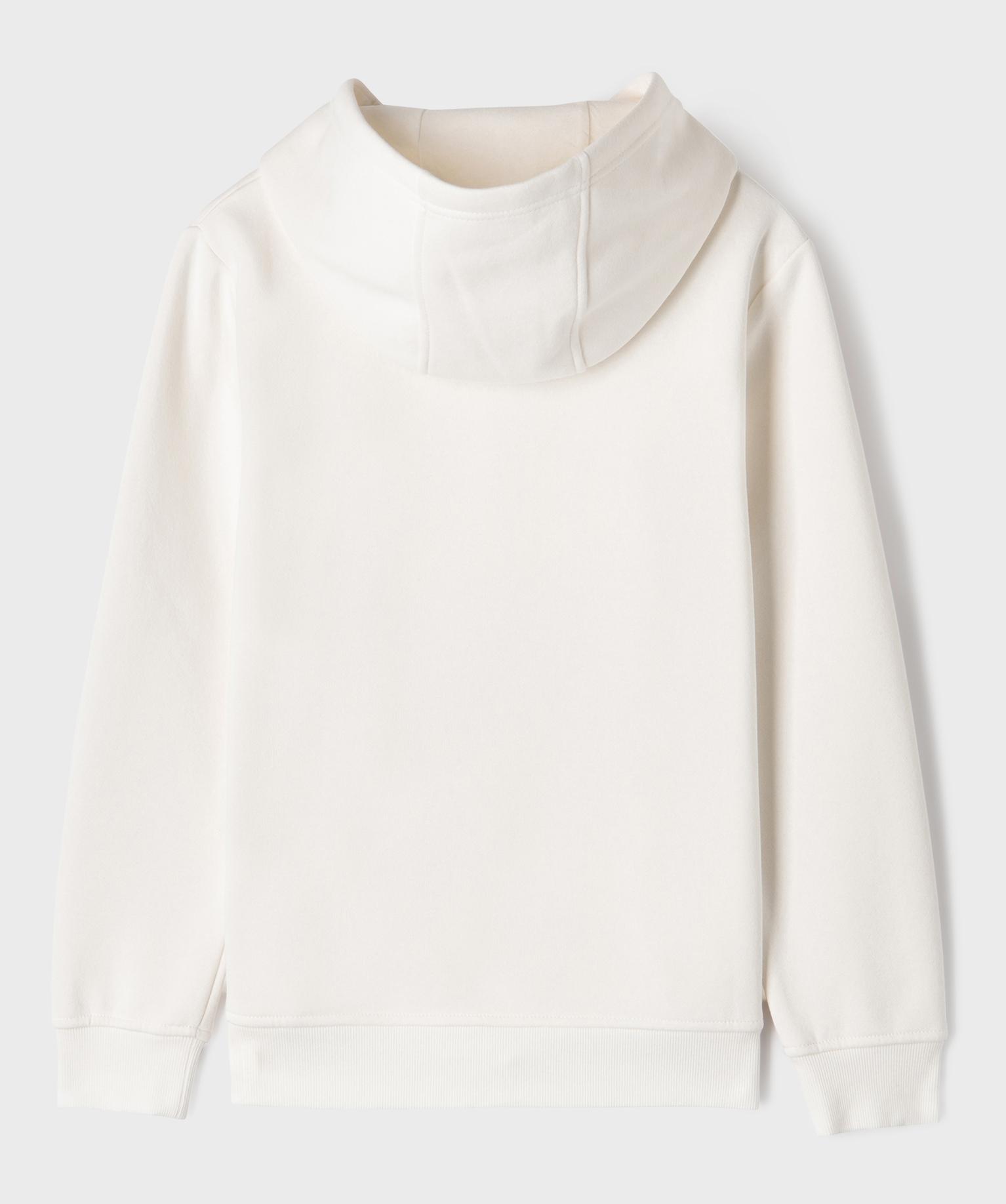 Sweat à capuche uni intérieur molletonné garçon ecru