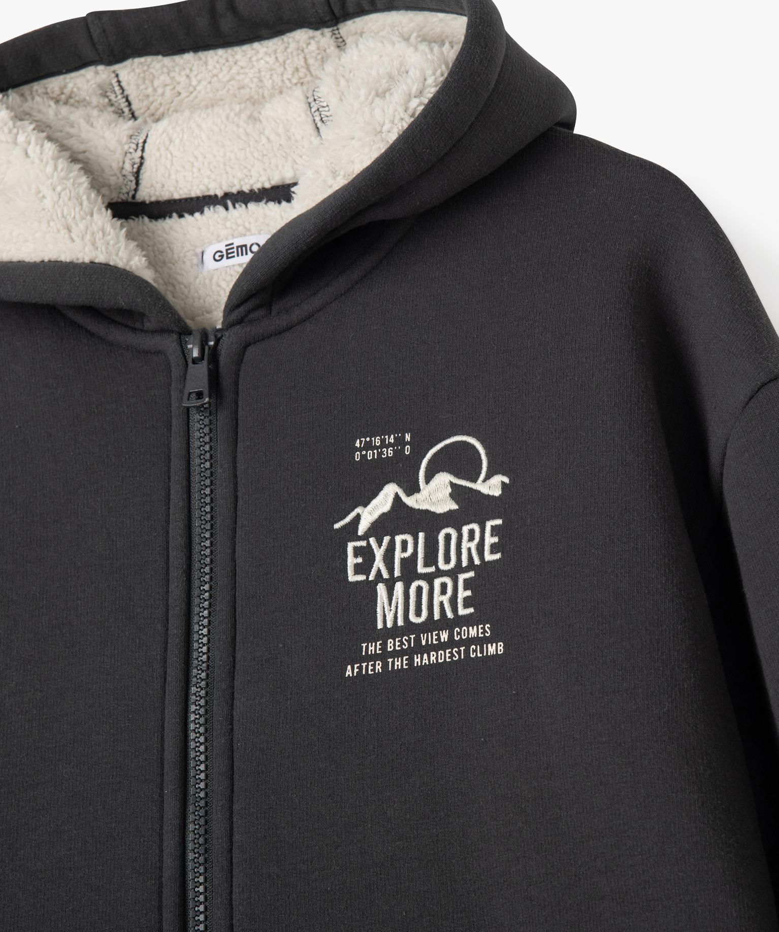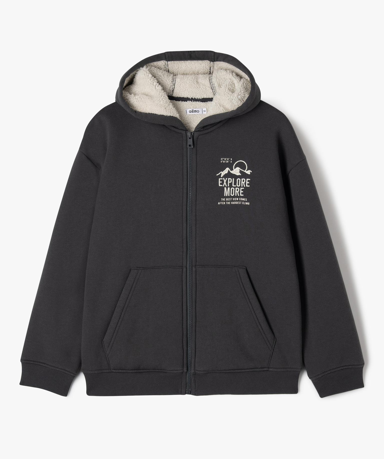 Sweat à capuche zippé avec doublure en sherpa garçon gris fonce