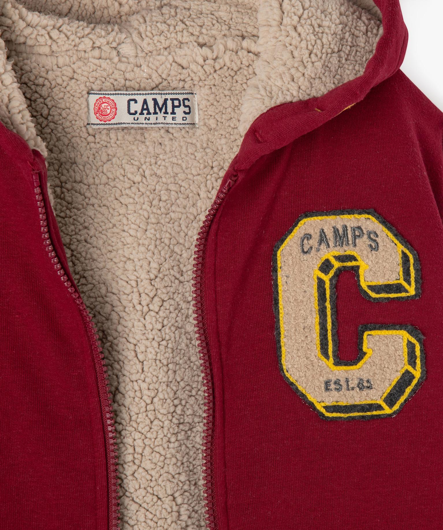 Sweat à capuche zippé doublure sherpa garçon - Camps United orange fonce