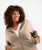 Gémo présente une version ultra glamour du sweat à capuche spécialement imaginé pour mettre la silhouette des femmes en valeur. Ce sweat femme grande taille (du 46/48 au 54/56) est confectionné dans une matière souple et douce offrant un toucher unique ! Un sweat zippé, doté de larges poches façon kangourou. Les manches avec épaules tombantes, qui accentuent l’allure loose du modèle, sont resserrées aux poignets par un large élastique. Ce sweat aux reflets irisés accompagnera à merveille un jean et une paire de baskets, mais aussi une jupe droite et des derbies.