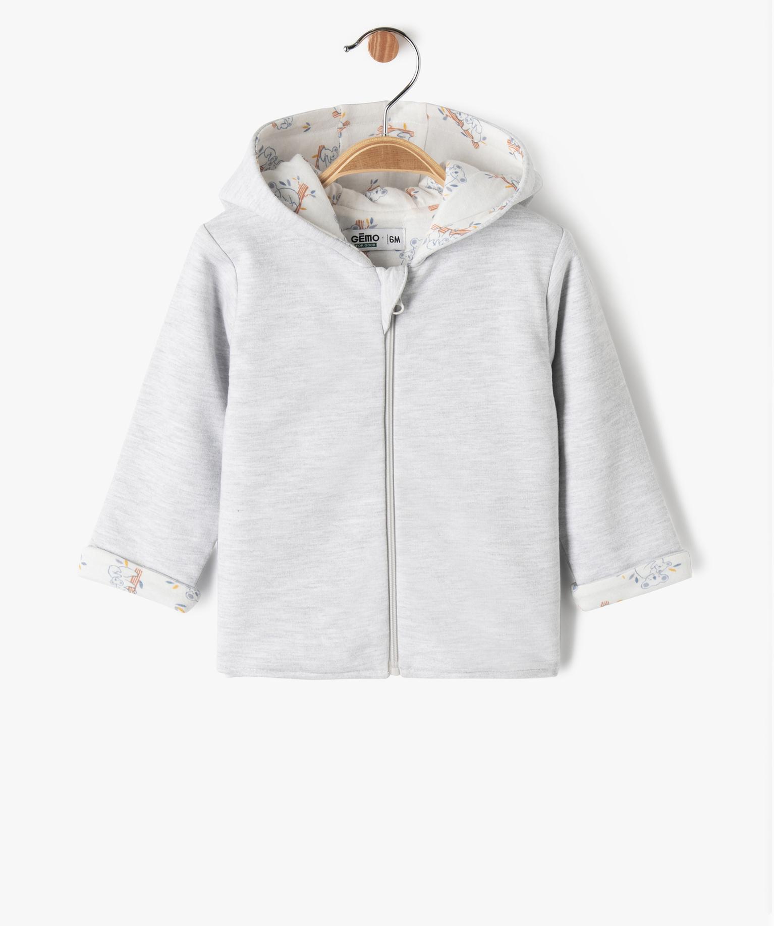 Sweat à capuche zippé réversible bébé garçon gris