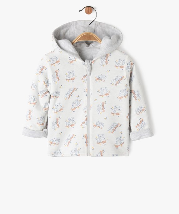 Pratique, confortable et ingénieux, ce sweat à capuche possède de nombreux atouts et séduit les tout-petits comme les parents ! Un sweat bébé garçon finement rembourré avec rembourrage en polyester recyclé. Confortable et fermé par un zip, il s’enfile facilement sur un tee-shirt ou un pull. Ce sweat réversible affiche un côté chiné sobre et élégant et un côté imprimé orné d’adorables petits koalas.