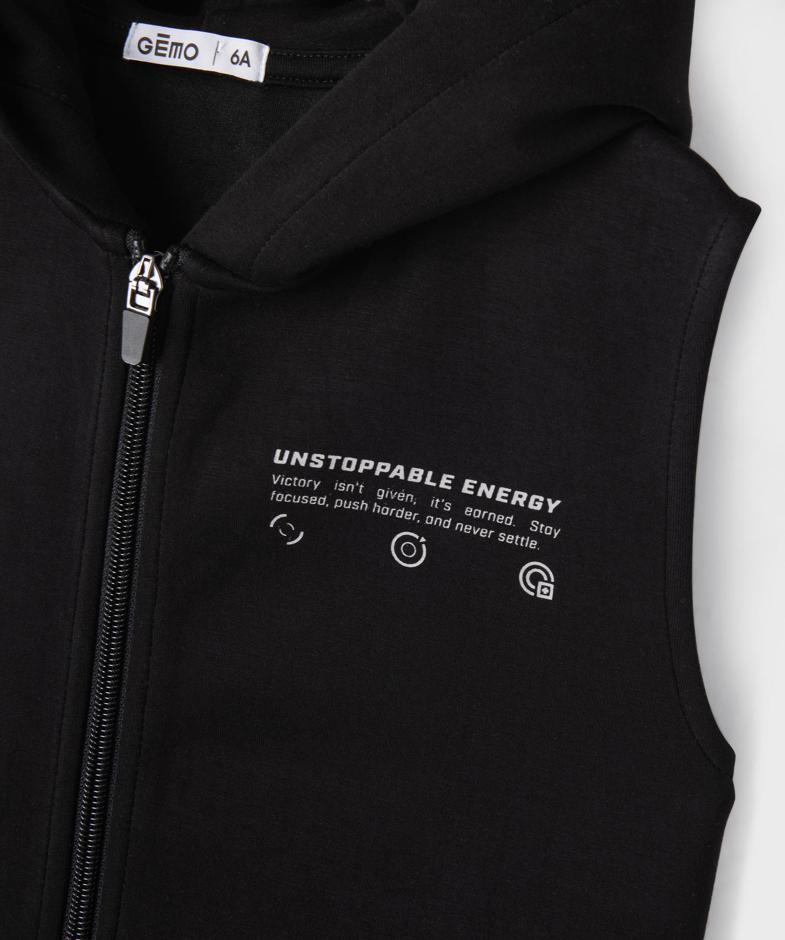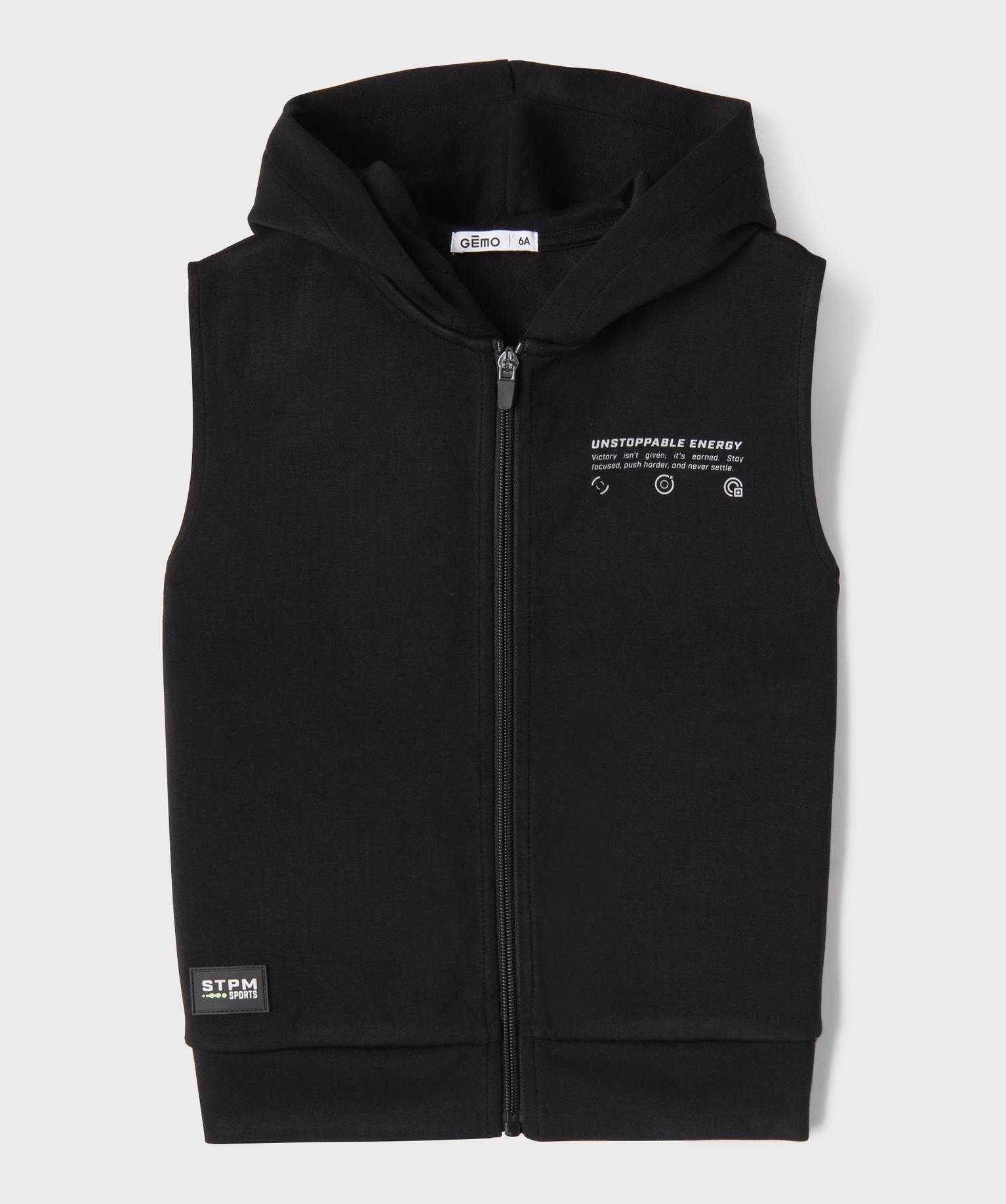 Sweat à capuche zippé sans manches garçon noir