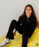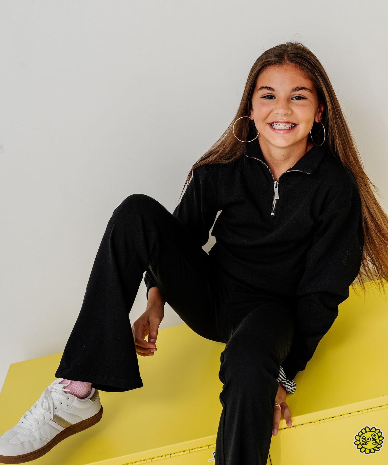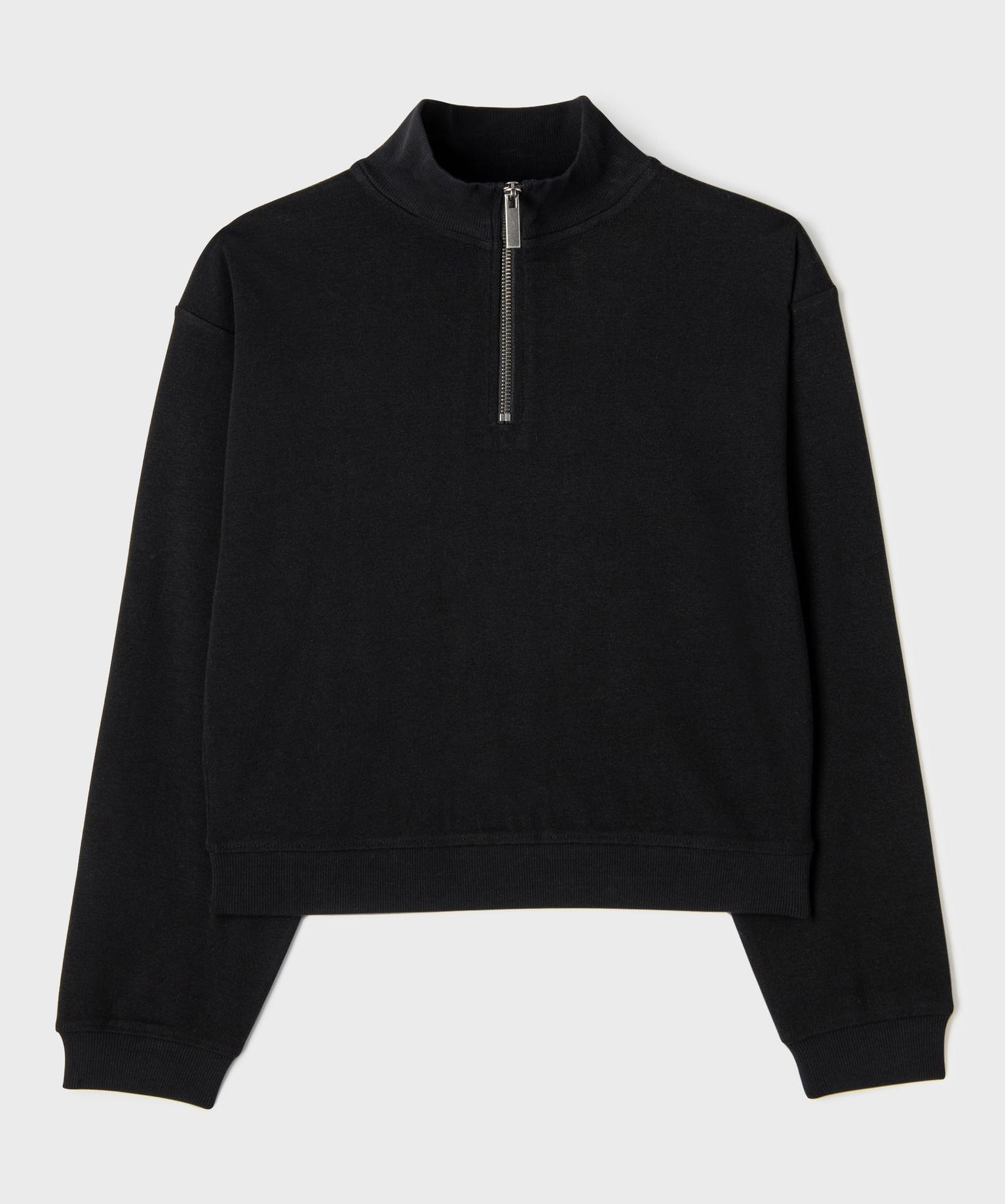 Sweat à col camionneur zippé coupe loose en maille extensible fille noir