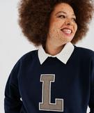 Sweat à col chemise amovible femme grande taille - LuluCastagnette marine